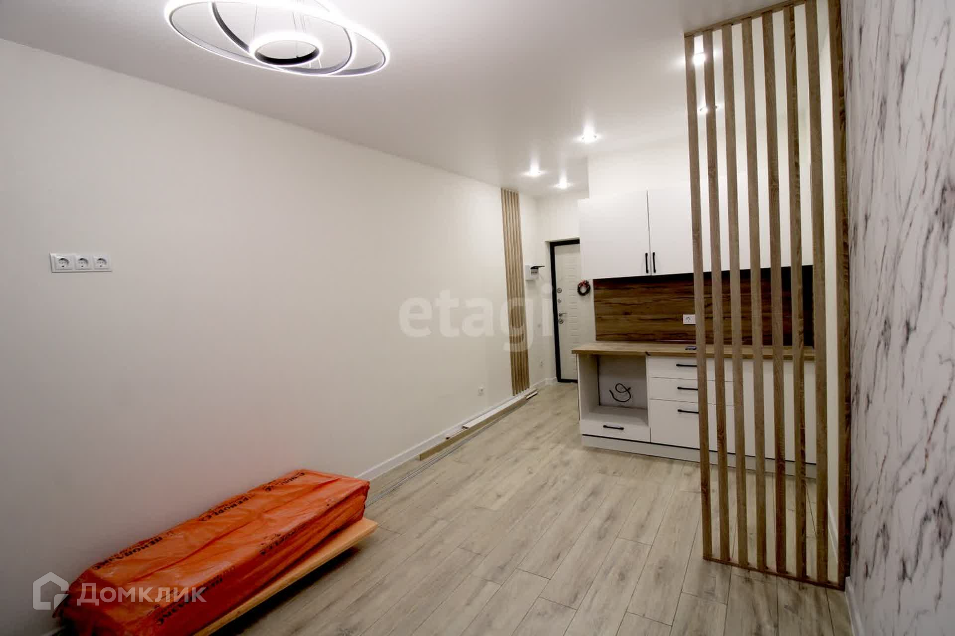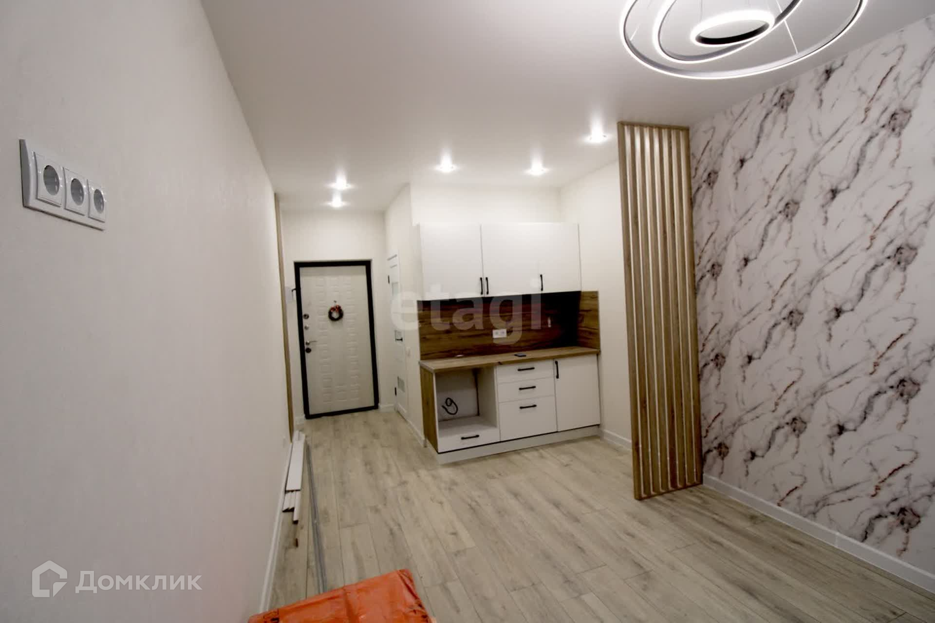 Расположена на 15-м этаже, общая площадь – 24 кв.м. В квартире выполнен качественный евроремонт в серых тонах, на полу ламинат, натяжные потолки, санузел совмещен в кафеле, балкон застеклен.