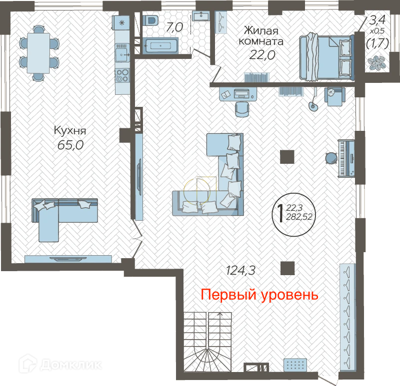Квартира расположена на 12 этаже. Из окон открываются потрясающие виды на историческую часть города.. Планировка: общ. S= 282 кв. м, Высота потолков 3,4 м. Состояние квартиры - предчистовая отделка от застройщика.