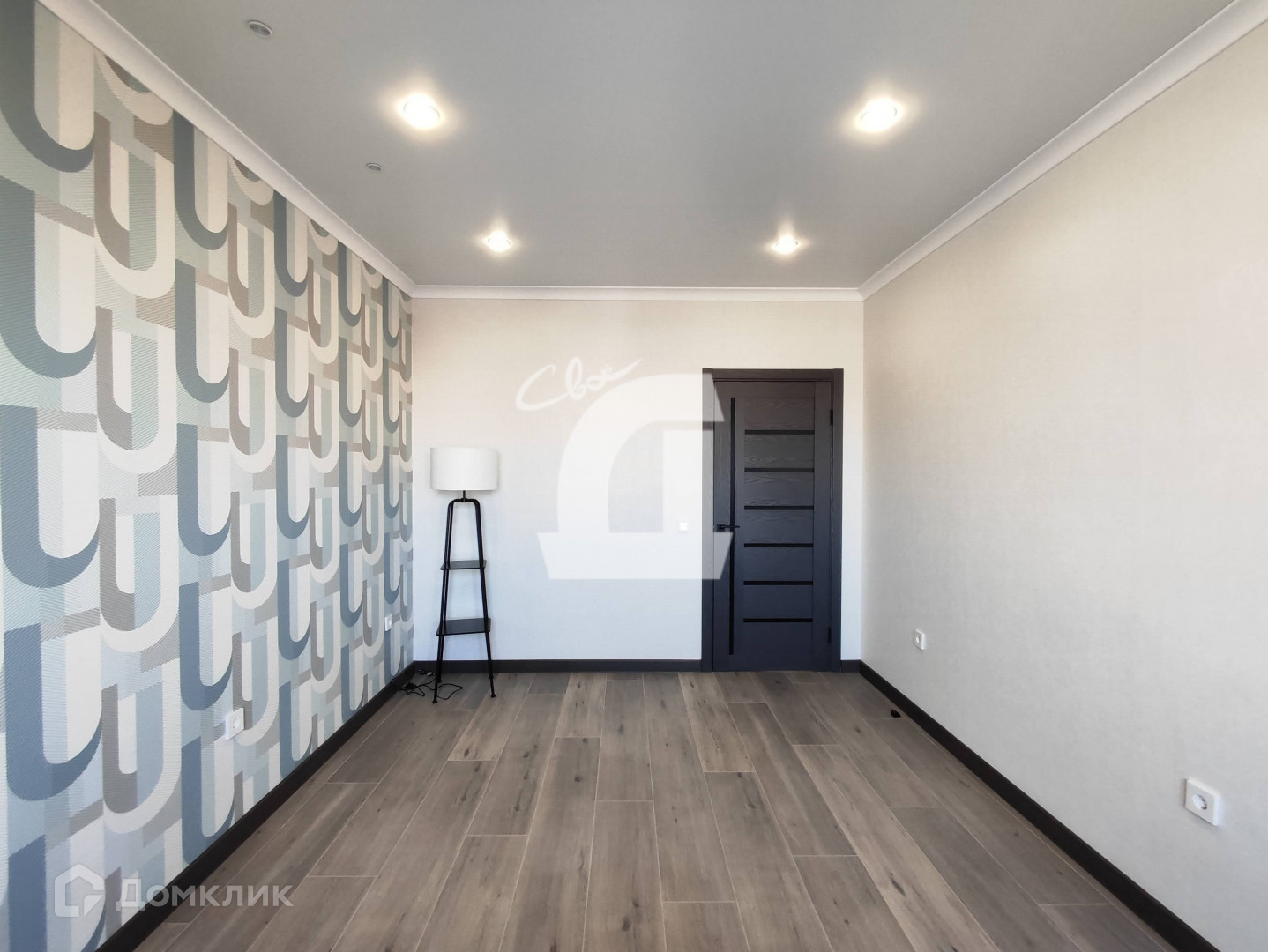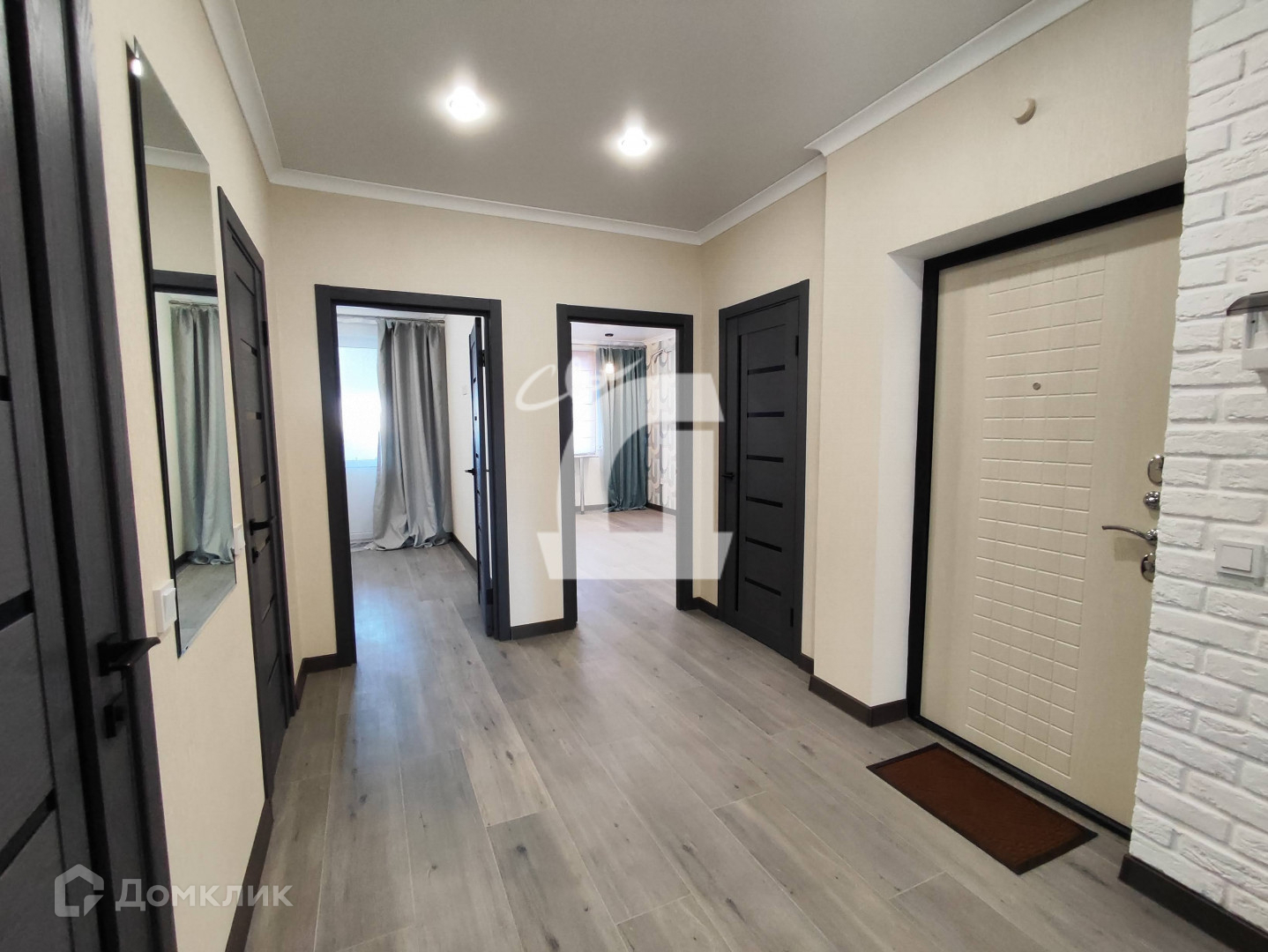 На полу ламинат, натяжные потолки во всех помещениях, поклеены Немецкие обои.