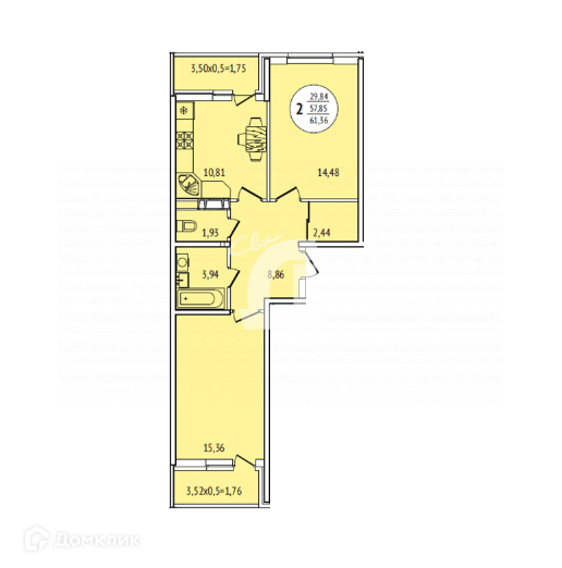 Общая площадь 61 м2