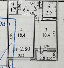 Общая площадь 43.5 м2