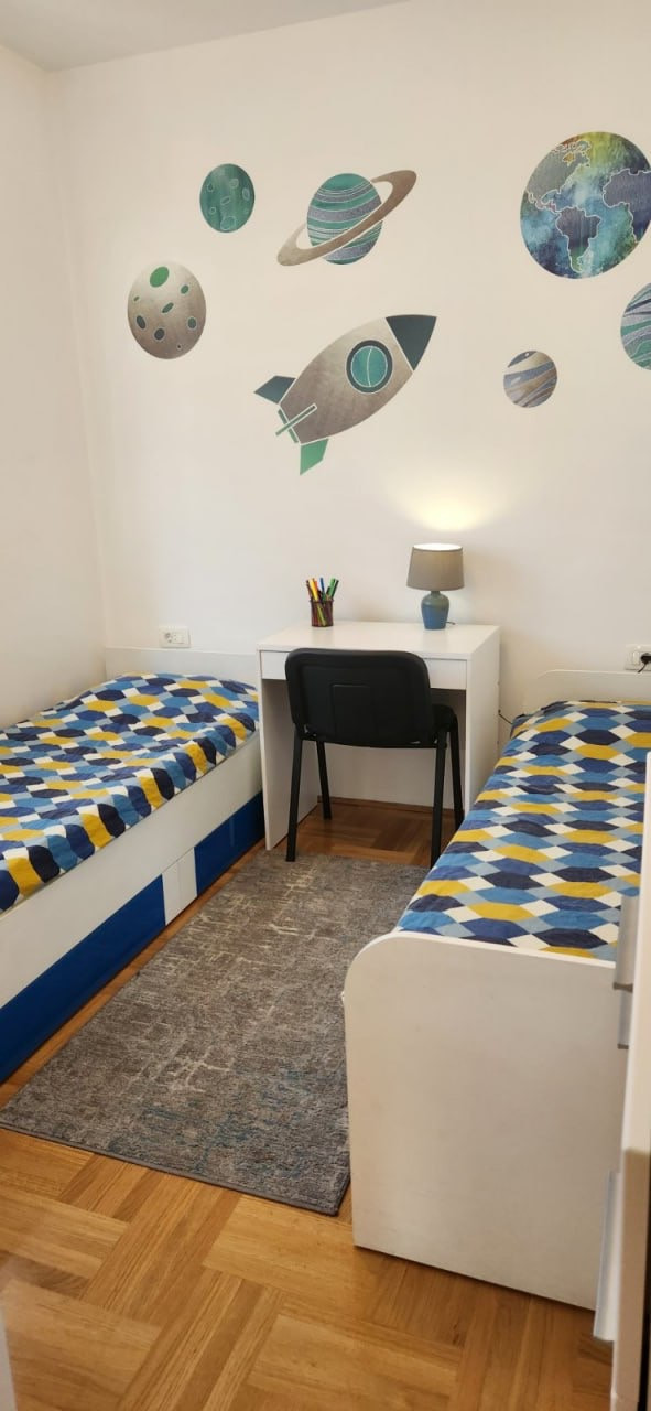 Квартира находится в районе с развитой инфраструктурой: в шаговой доступности расположены школы, детские сады, магазины, аптеки, поликлиника и остановки общественного транспорта. Рядом находятся парк и сквер для прогулок.