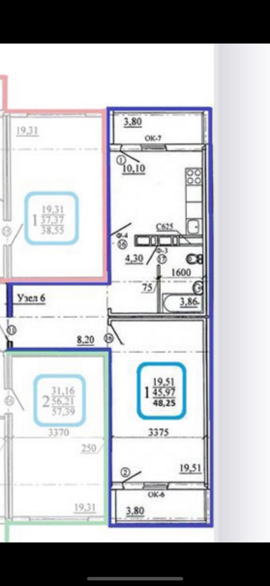 Общая площадь 53.5 м2