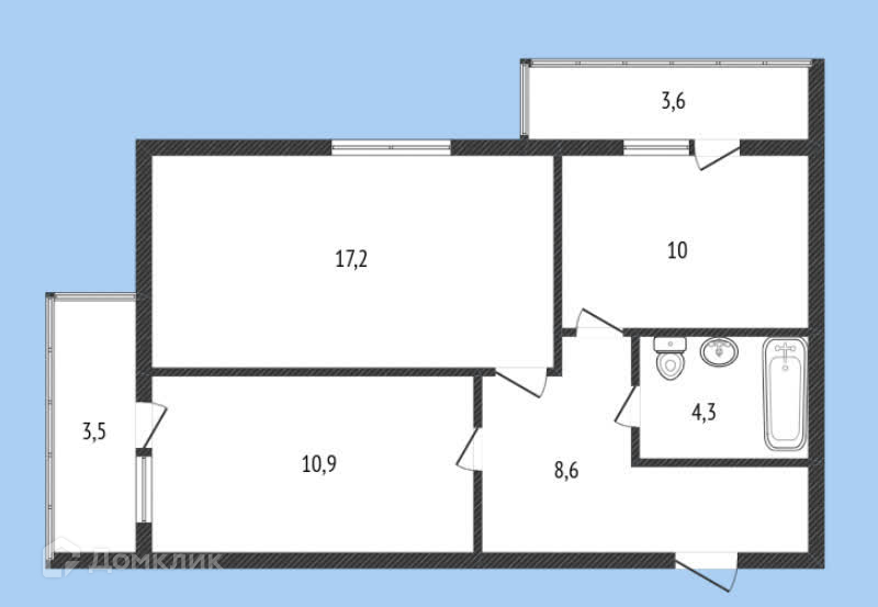 Общая площадь 49.5 м2