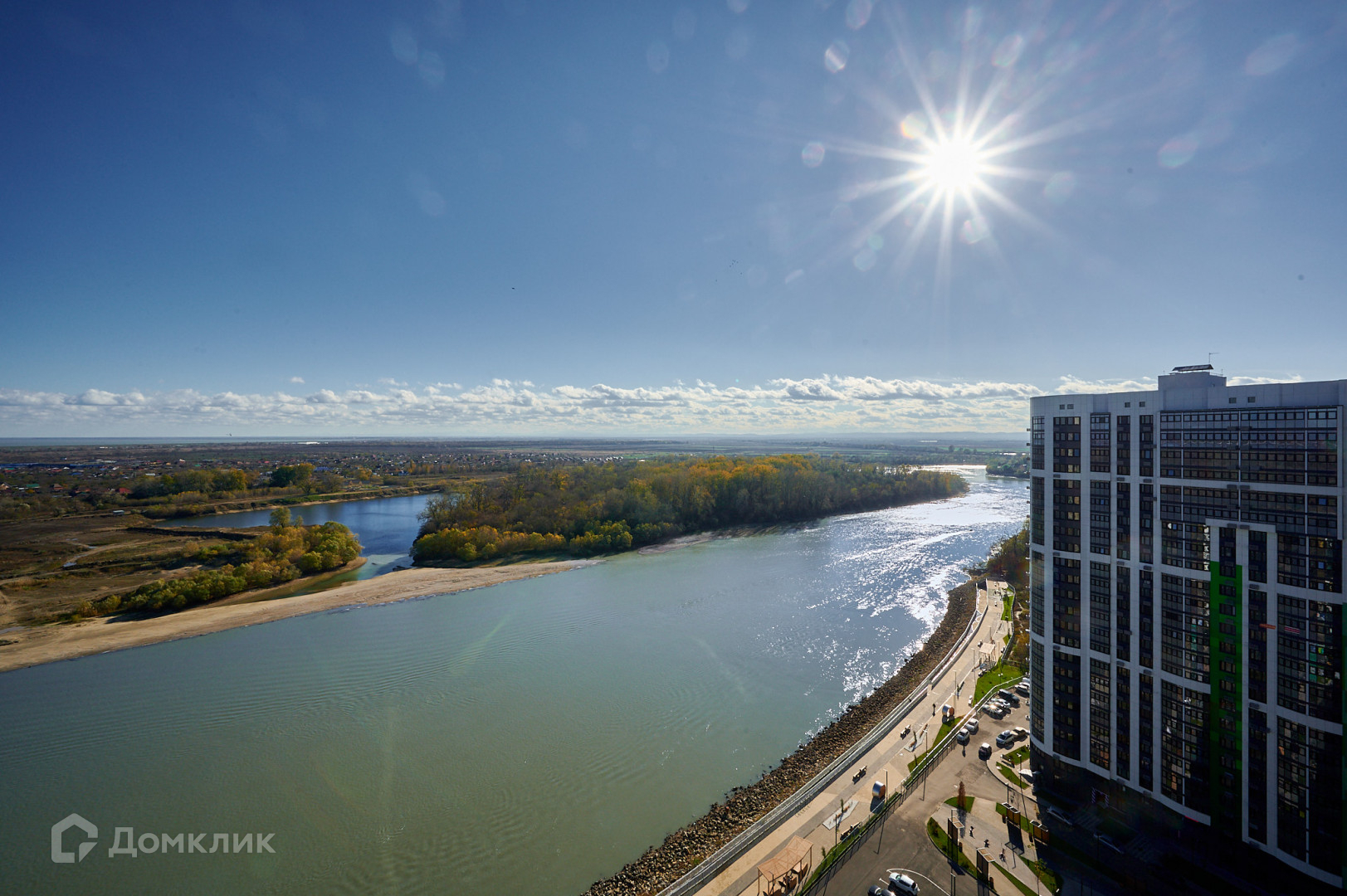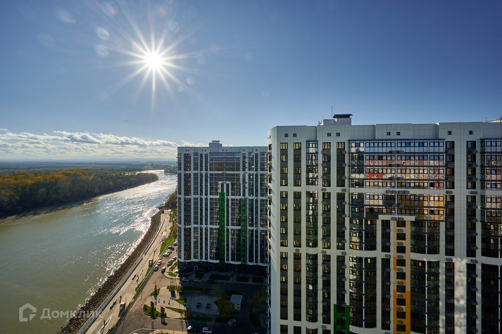 ЖК расположен в живописном месте на берегу реки Кубань, на набережной, в самом зеленом уголке ГМР. Две минуты пешком до реки для шикарного времяпровождения с семьей. Магазины в пешей доступности, небольшой торговый центр. Зелёный.