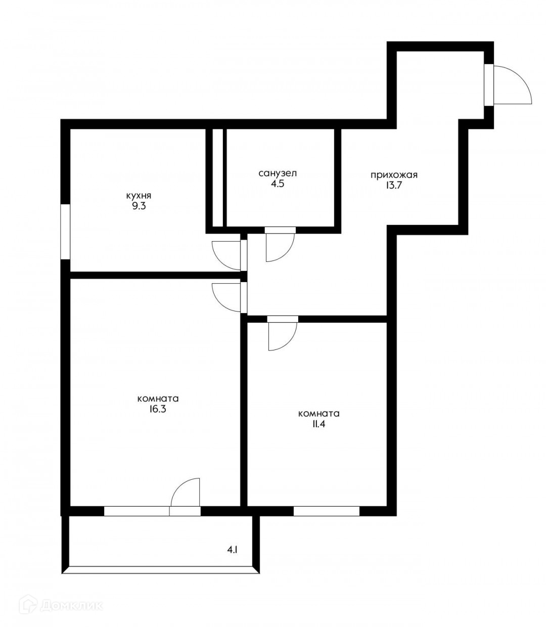 Общая площадь 55.2 м2
