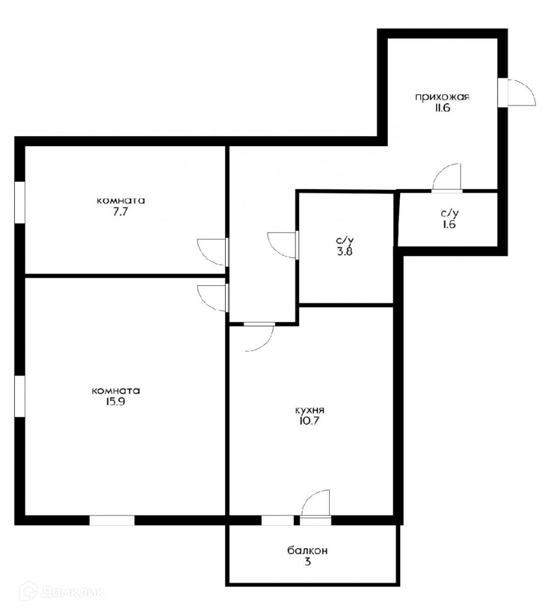 Общая площадь 54.3 м2