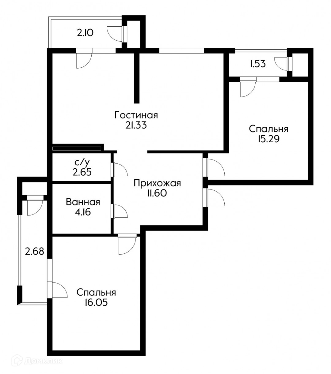 Общая площадь 77.1 м2