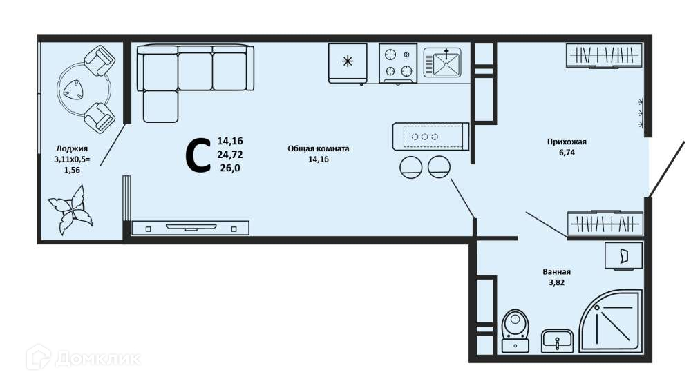 Общая площадь 26 м2