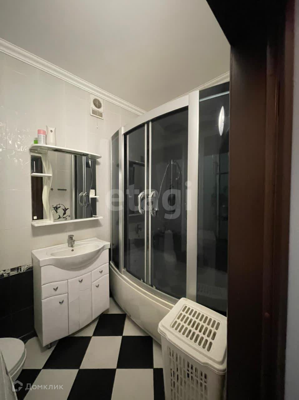 Ванная комната: большая душевая кабина, гарнитур, стиральная машина.