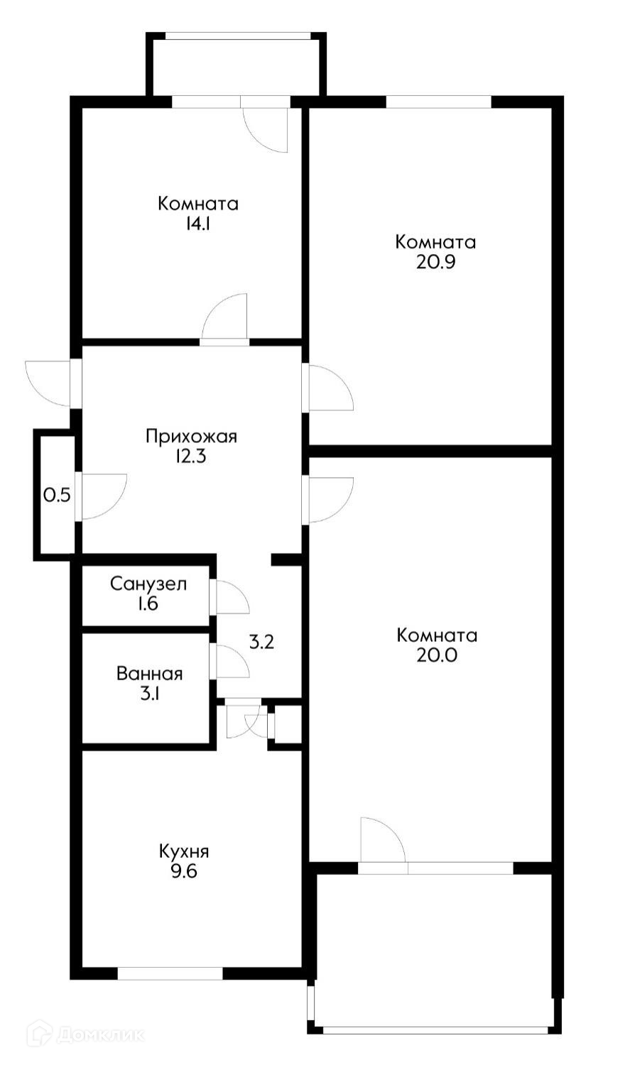 Общая площадь 85.4 м2