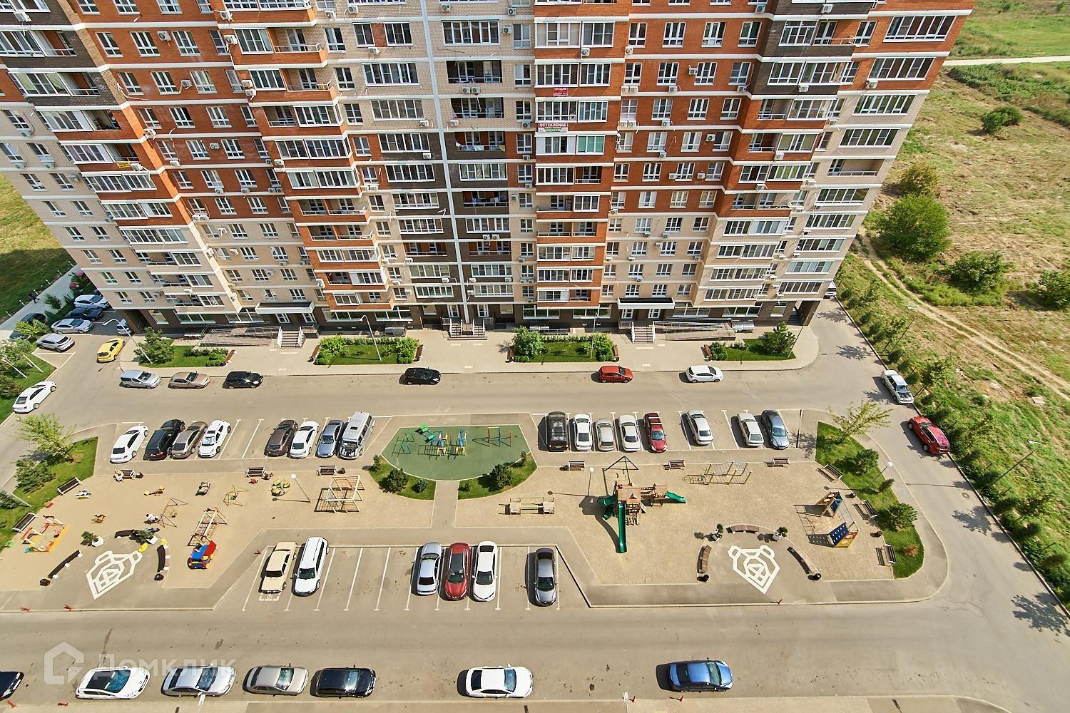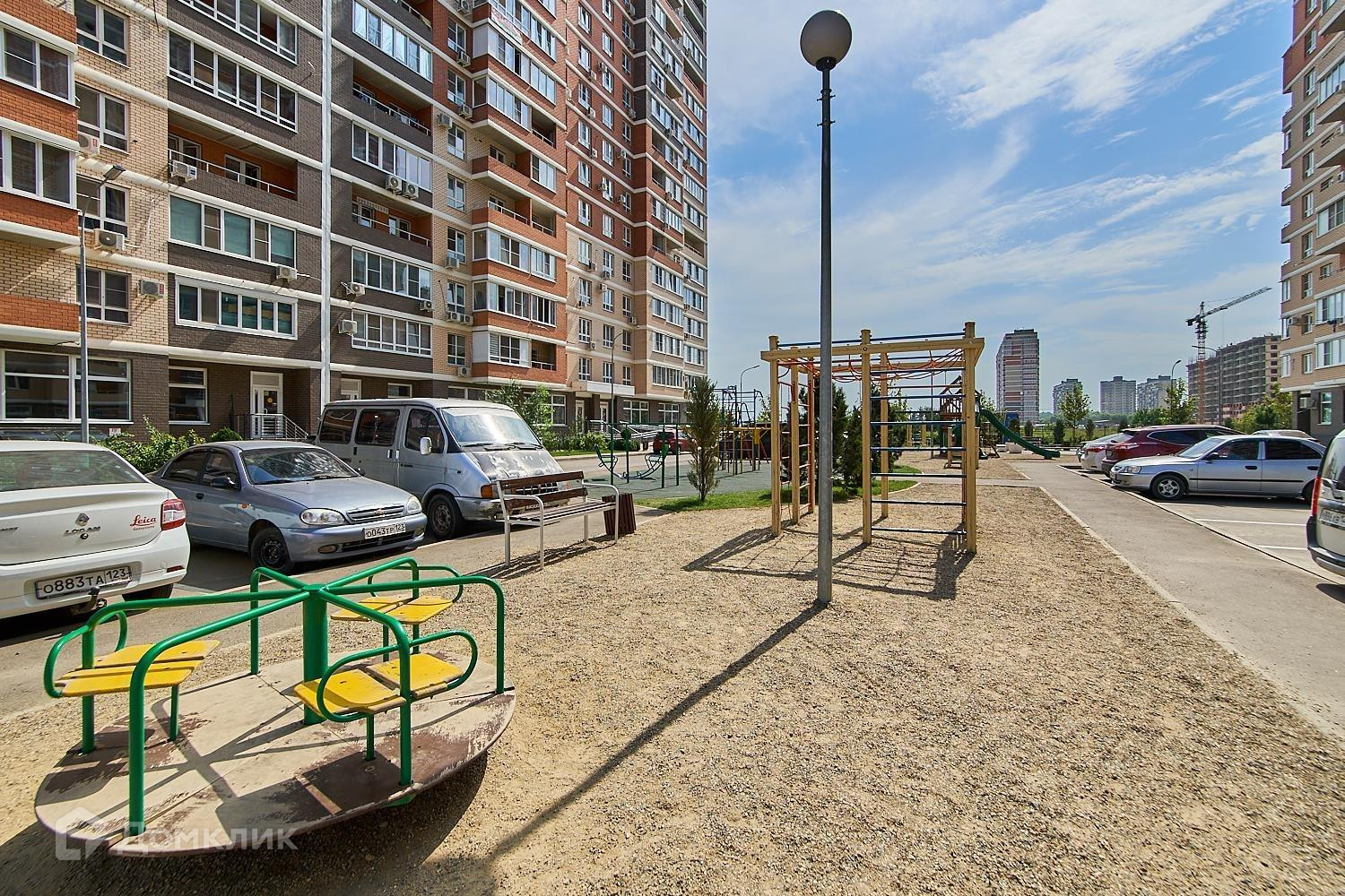Просторная, хорошо ухоженной придомовой территория. Во дворе есть большая детская и спортивная площадки, оборудованы места для отдыха, много места для стоянки авто.