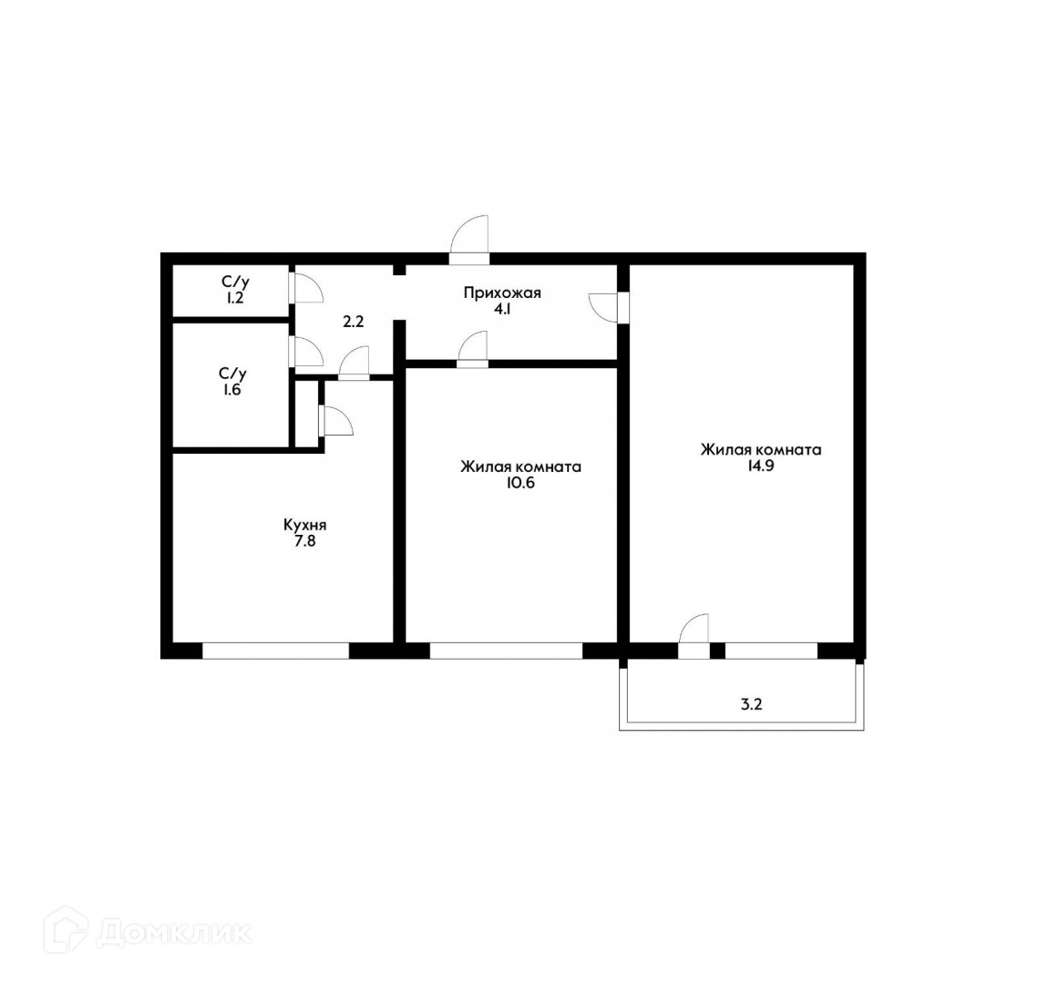 Общая площадь 43.9 м2