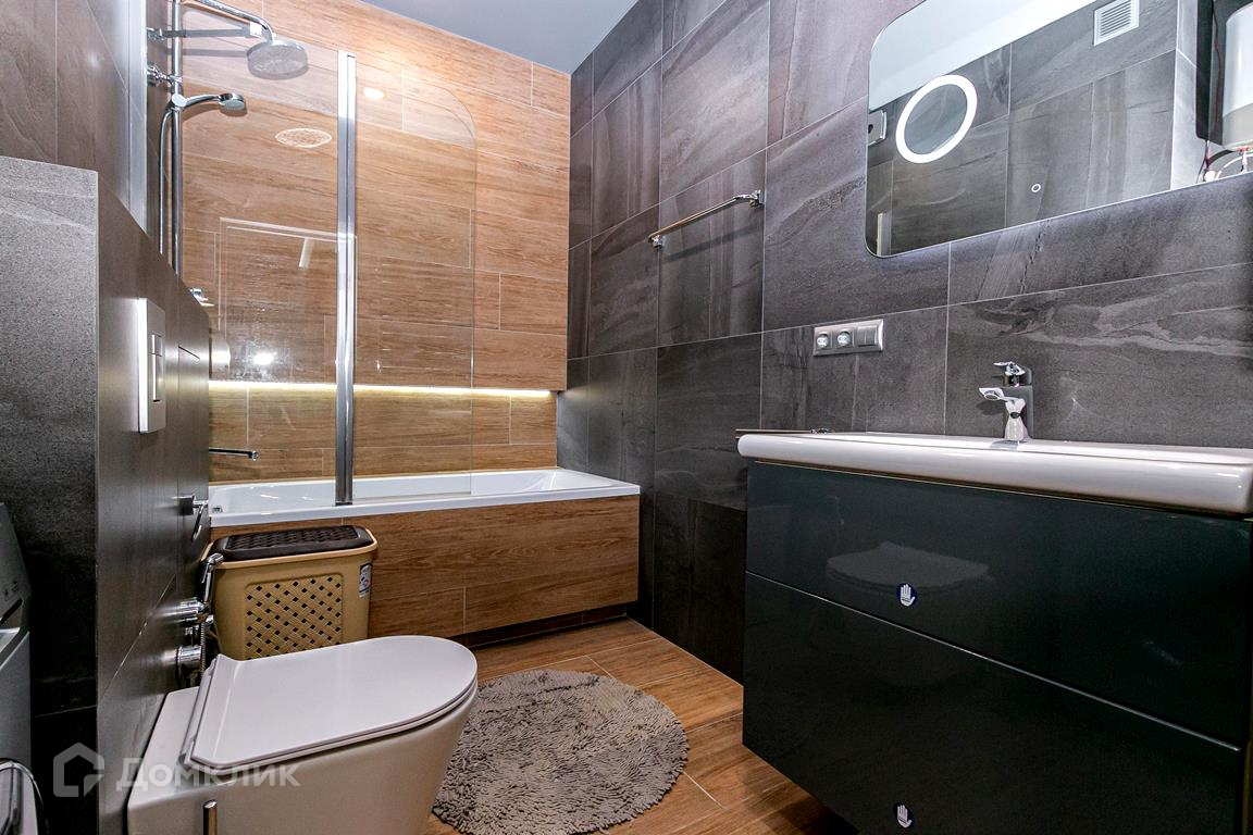 Одна из комнат оборудована большой кроватью и шкафом для одежды, а другая - диваном и креслом для комфортного отдыха. На кухне установлена современная техника, включающая варочную панель, духовой шкаф, посудомоечную и стиральную машины, а также обеденная зона. Ванная комната оснащена душевой кабиной, туалетом и умывальником, что обеспечивает высокий уровень комфорта.