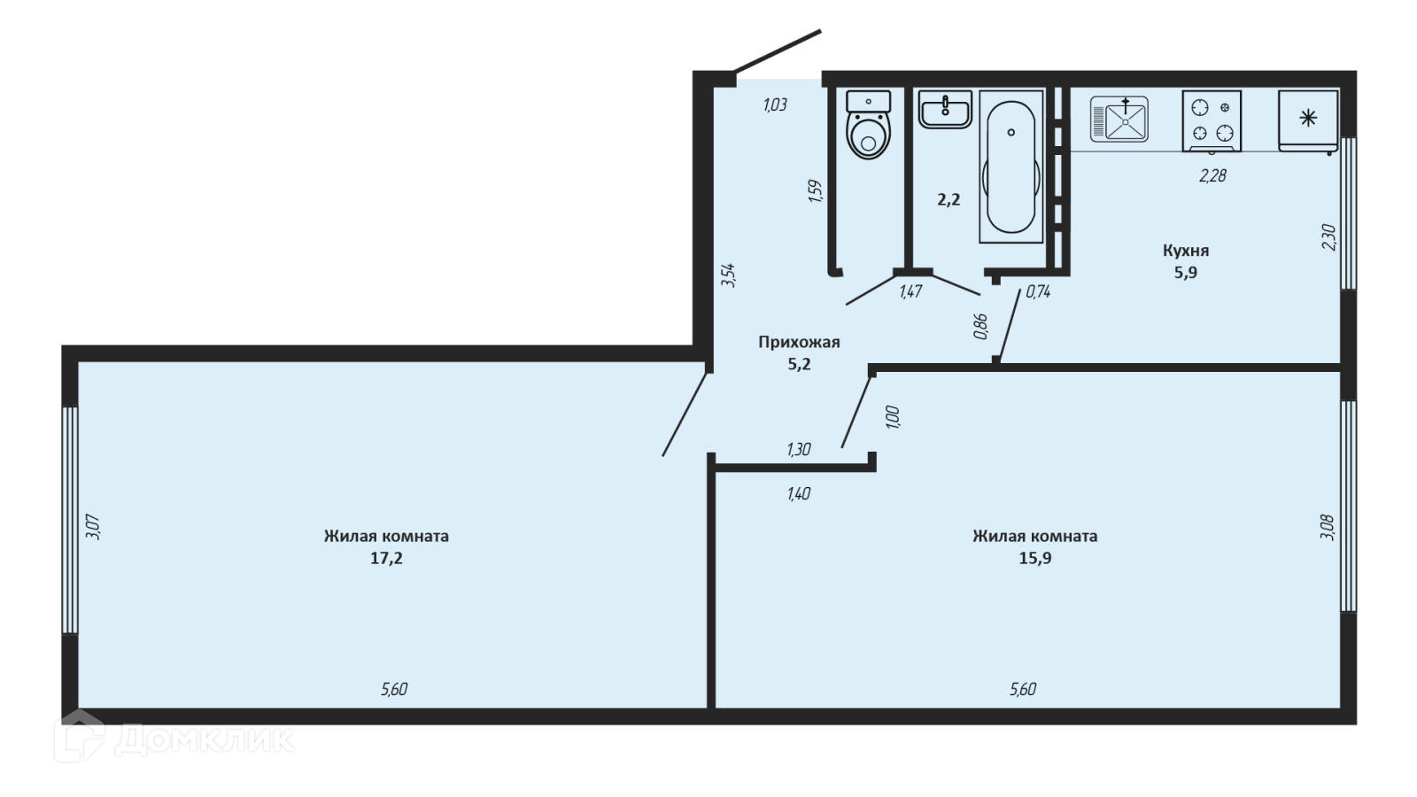 Площадь кухни 5.9 м2
