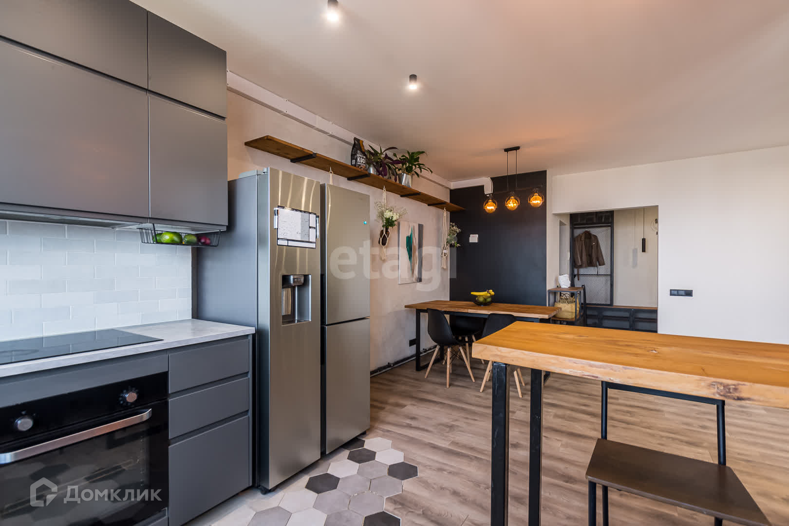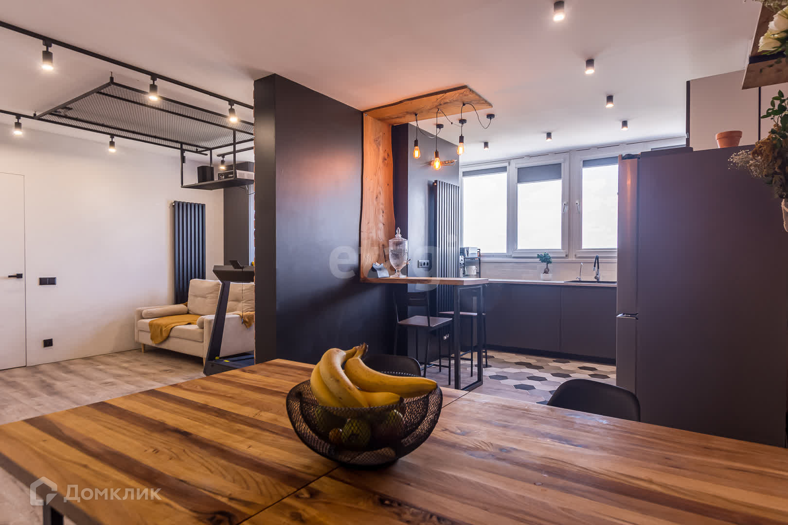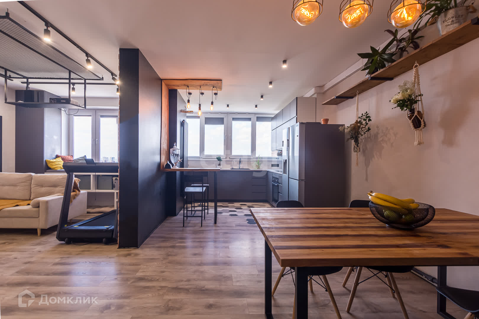 -Огромная кухня гостиная с домашним кинотеатром (проектор) в тв-зоне, встроенным кухонным гарнитуром укомплектованным все видами техники элитных производителей.