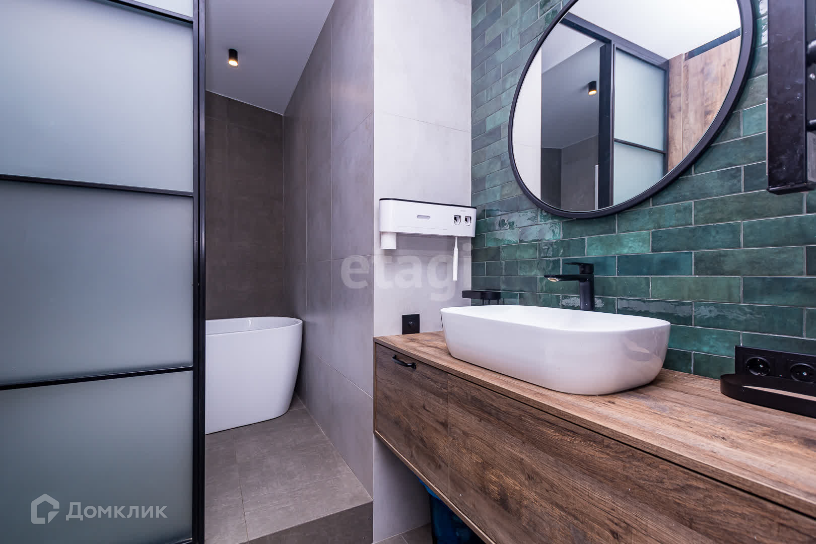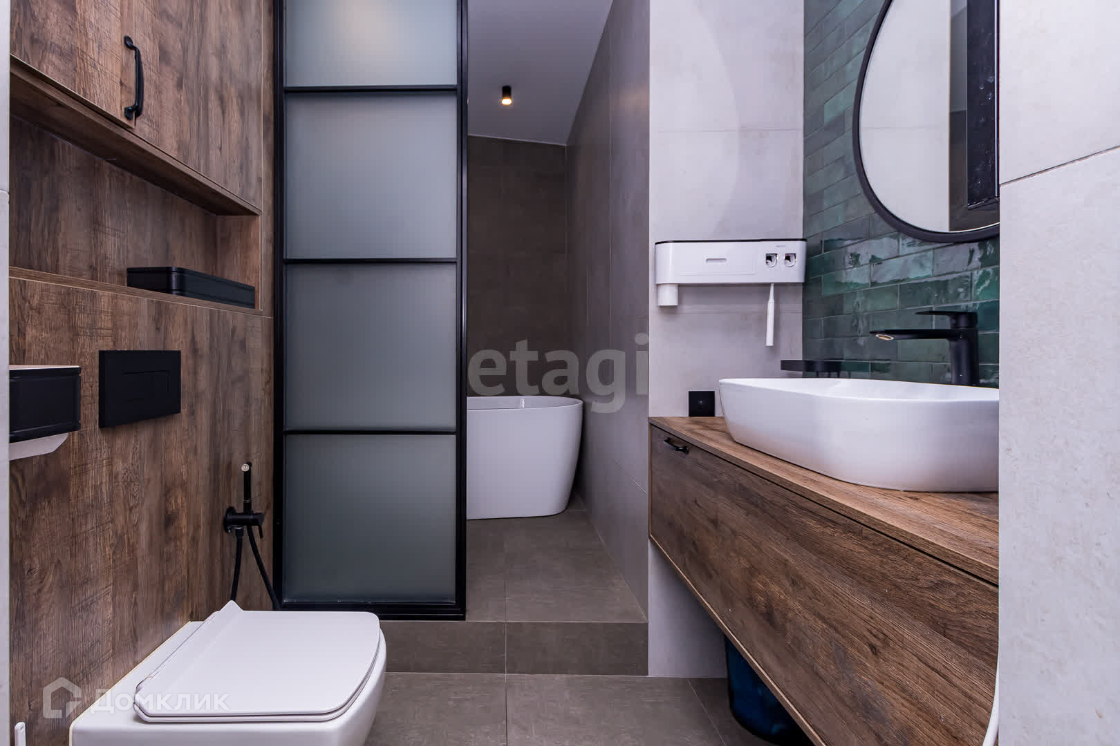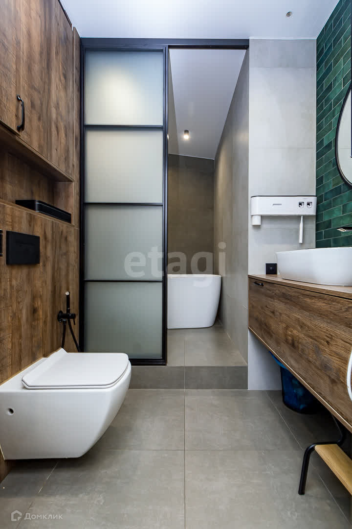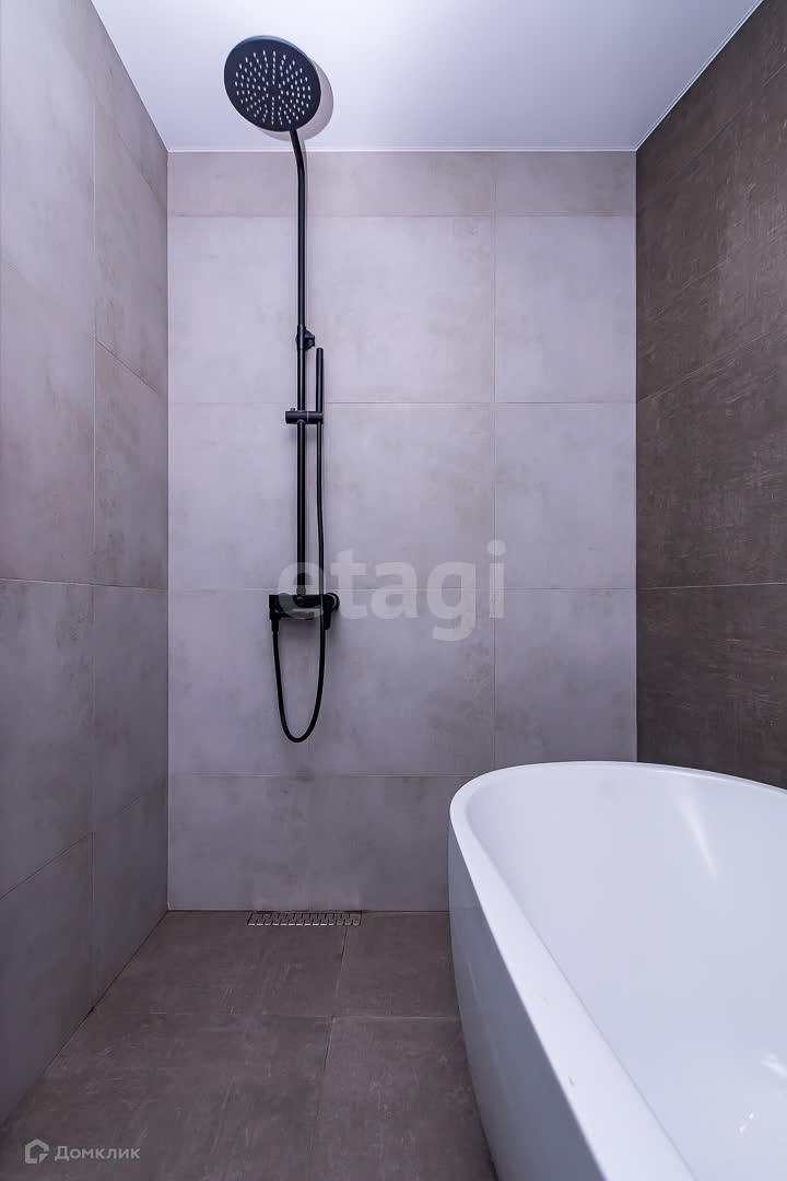 -санузел выложен керамогранитом, установлена отдельно стоящая ванна и душевая система позволяющая наслаждаться эффектом дождя не заходя в узкие закрытые помещения и поддоны.