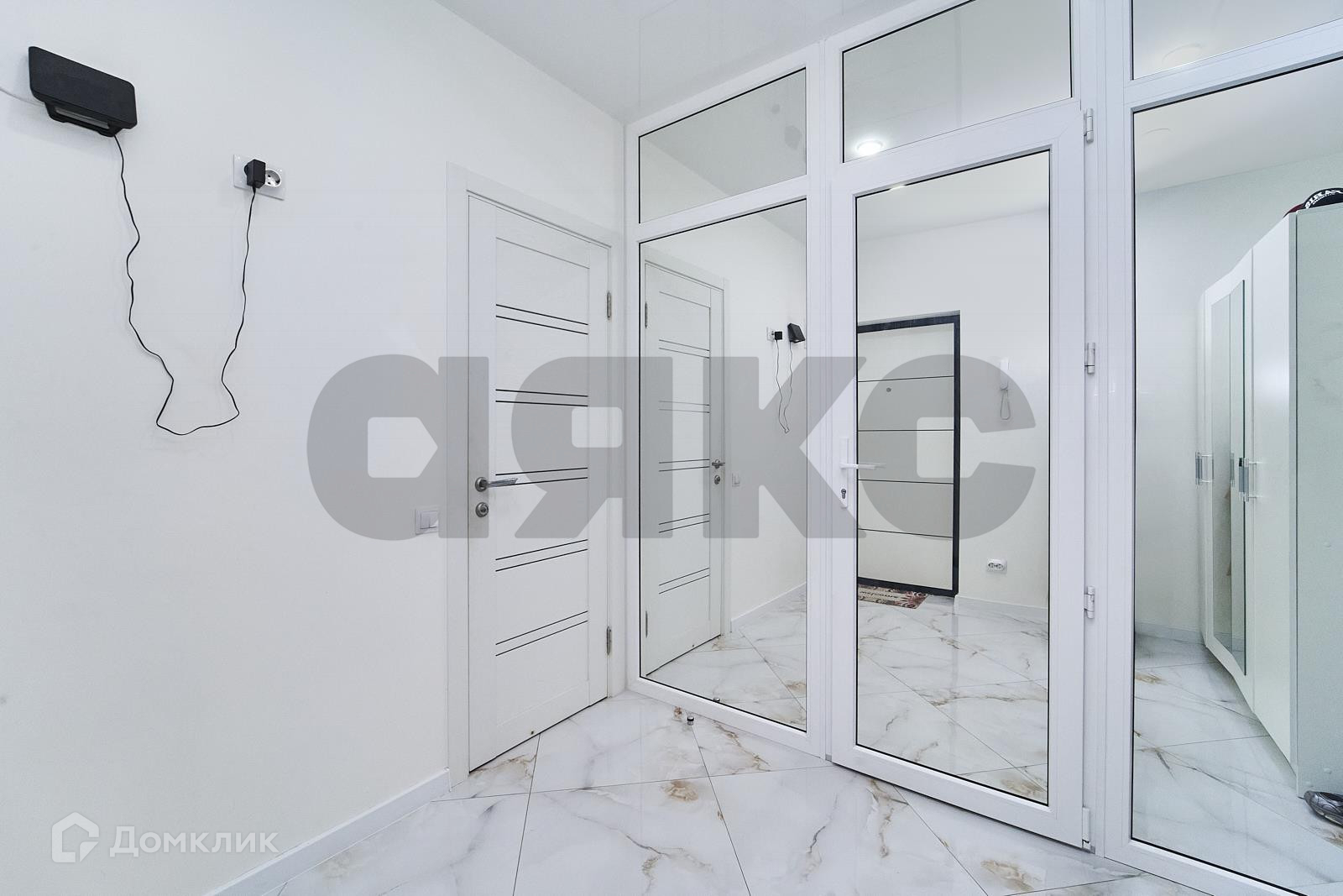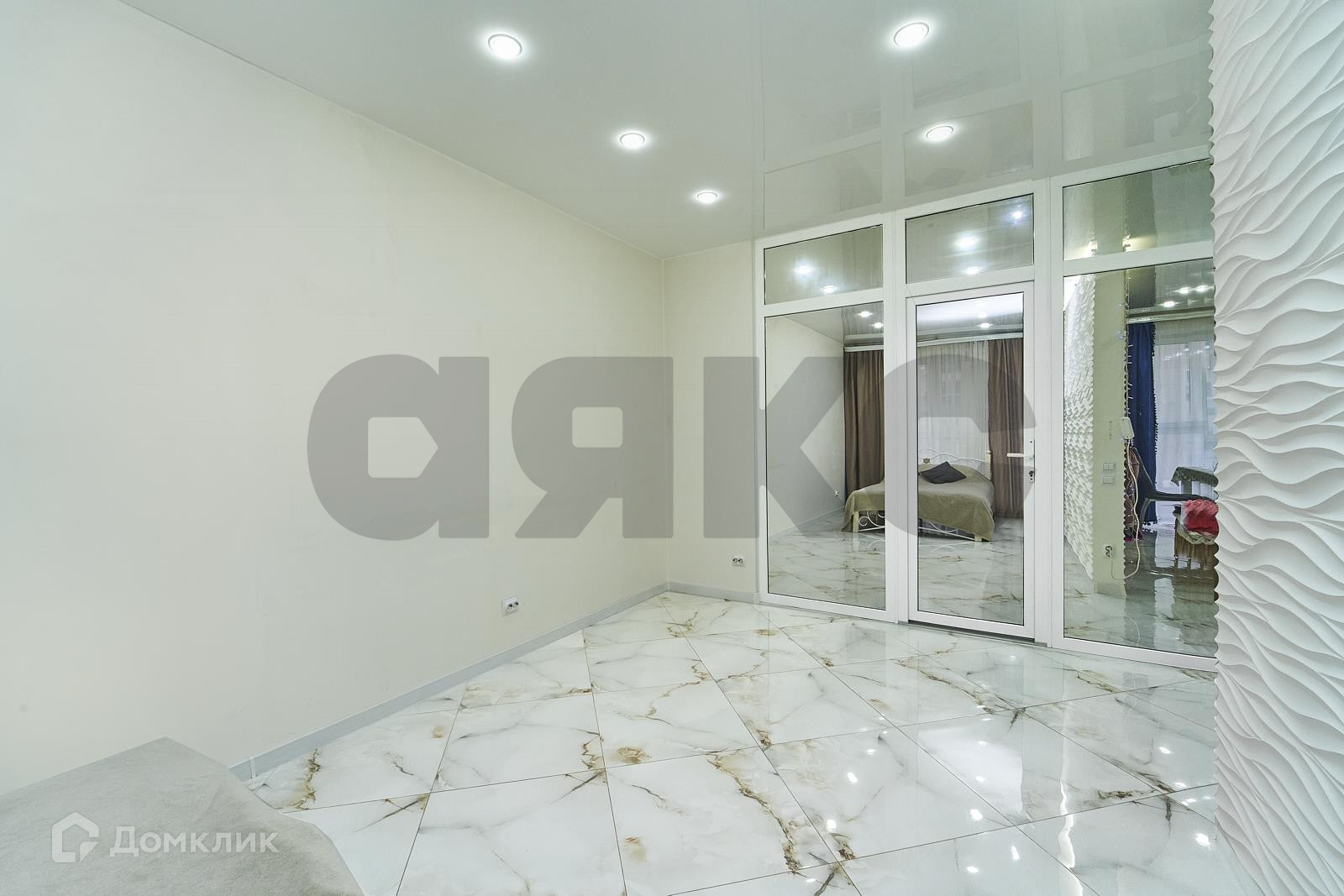 Прихожая и жилая часть квартиры разделена зеркальной перегородкой, что визуально увеличивает площадь квартиры и делает квартиру более светлой и просторной.