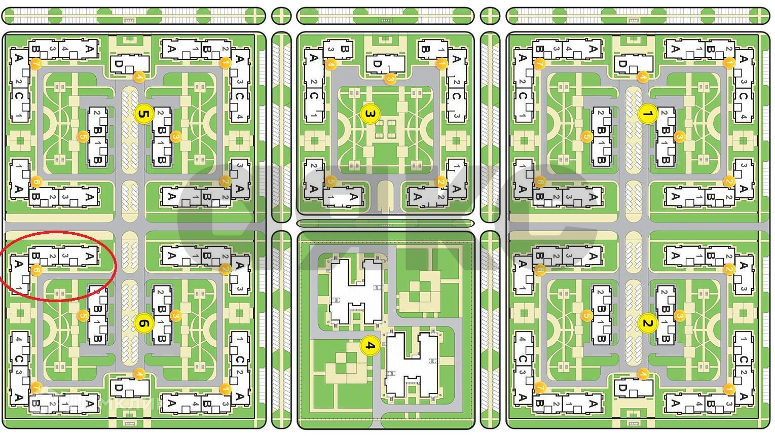 Район состоит из 6 кварталов, в каждом из которых есть собственная зеленая зона для прогулок и отдыха. Автомобильная