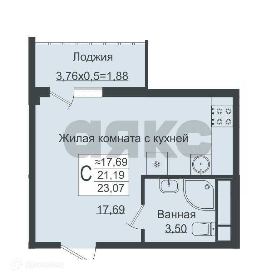 Общая площадь 23.07 м2
