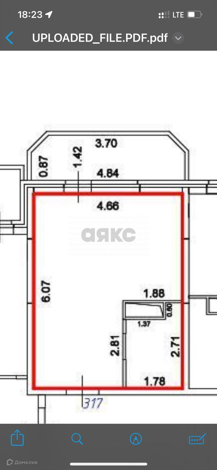 Балкон, лоджия 1 балкон