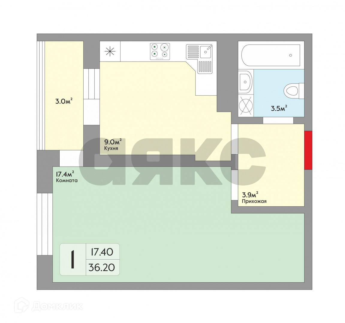 Общая площадь 34 м2