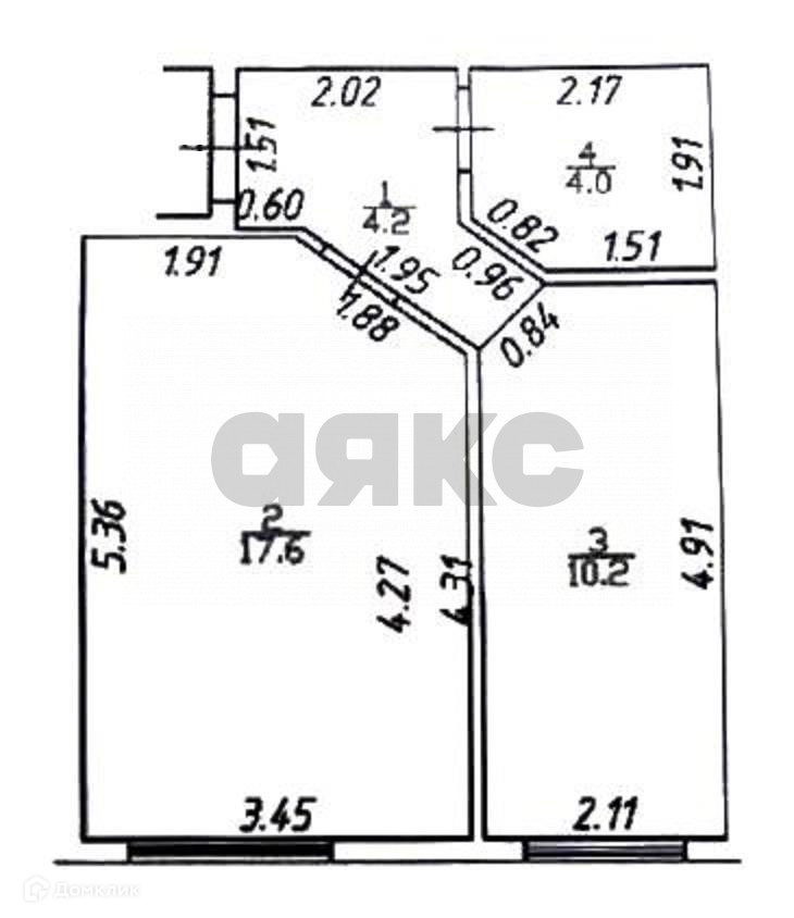 Жилая площадь 17.6 м2