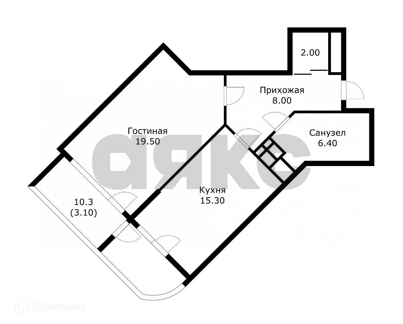 Общая площадь 51.8 м2
