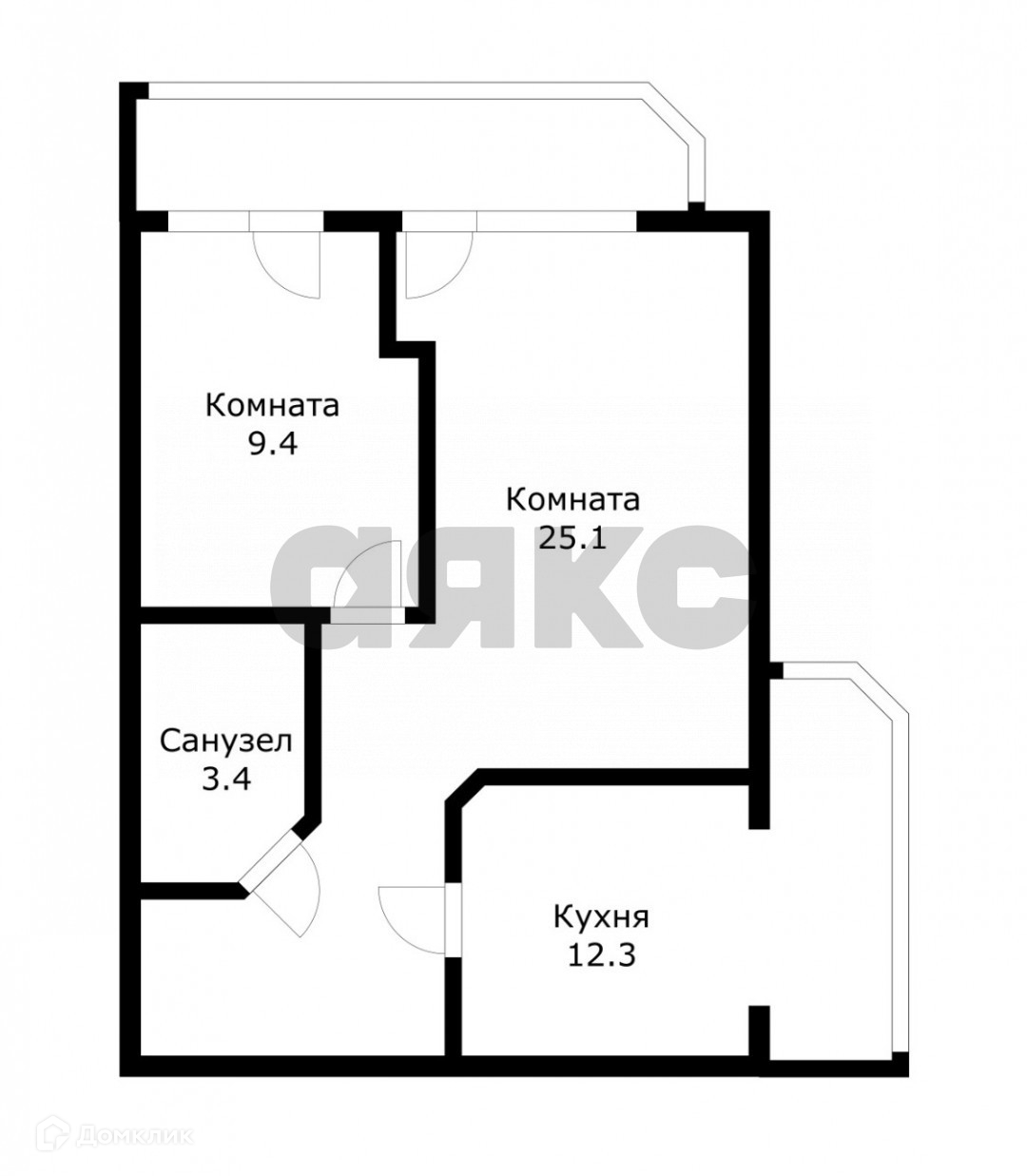Жилая площадь 34.5 м2