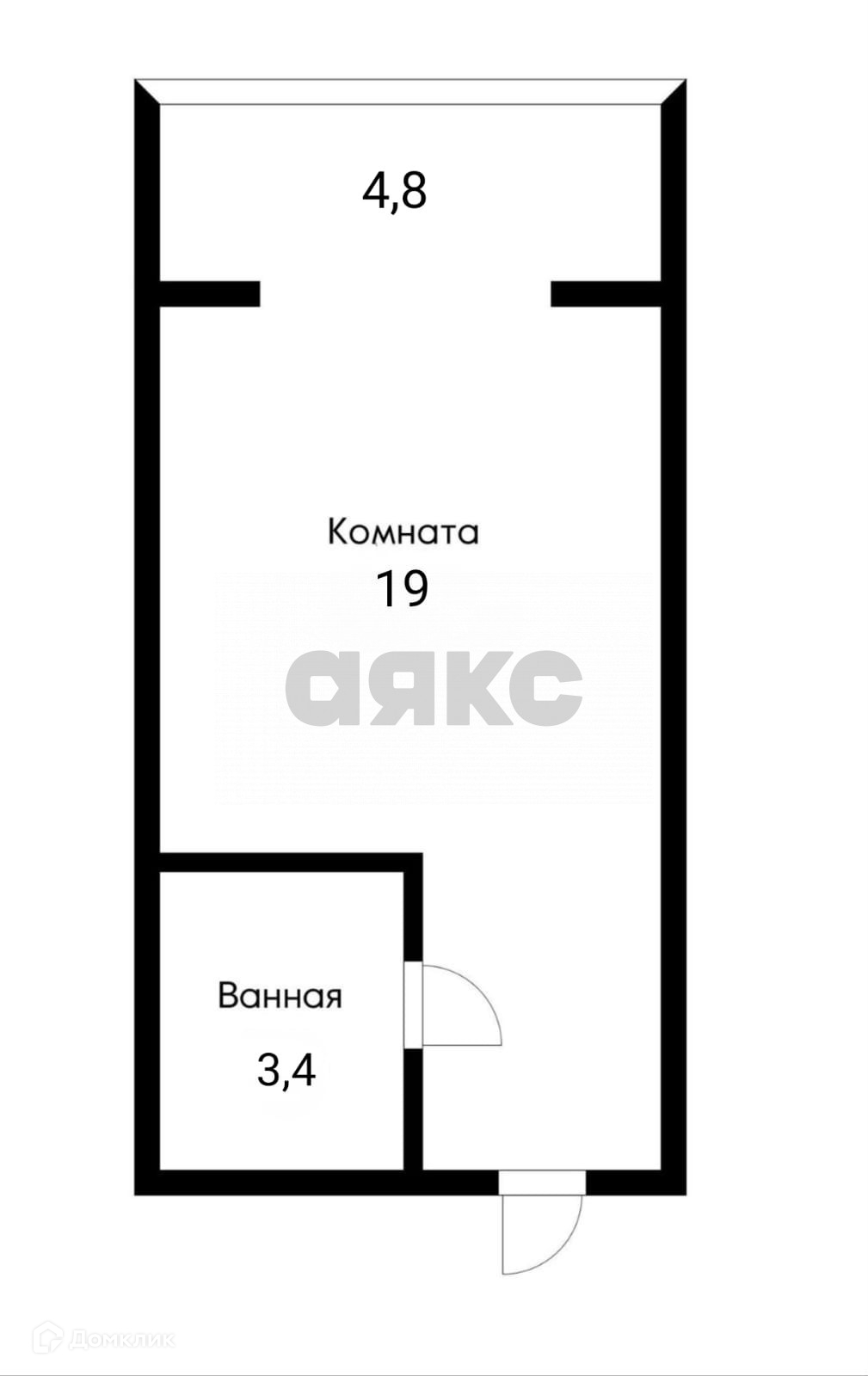 Общая площадь 22.4 м2