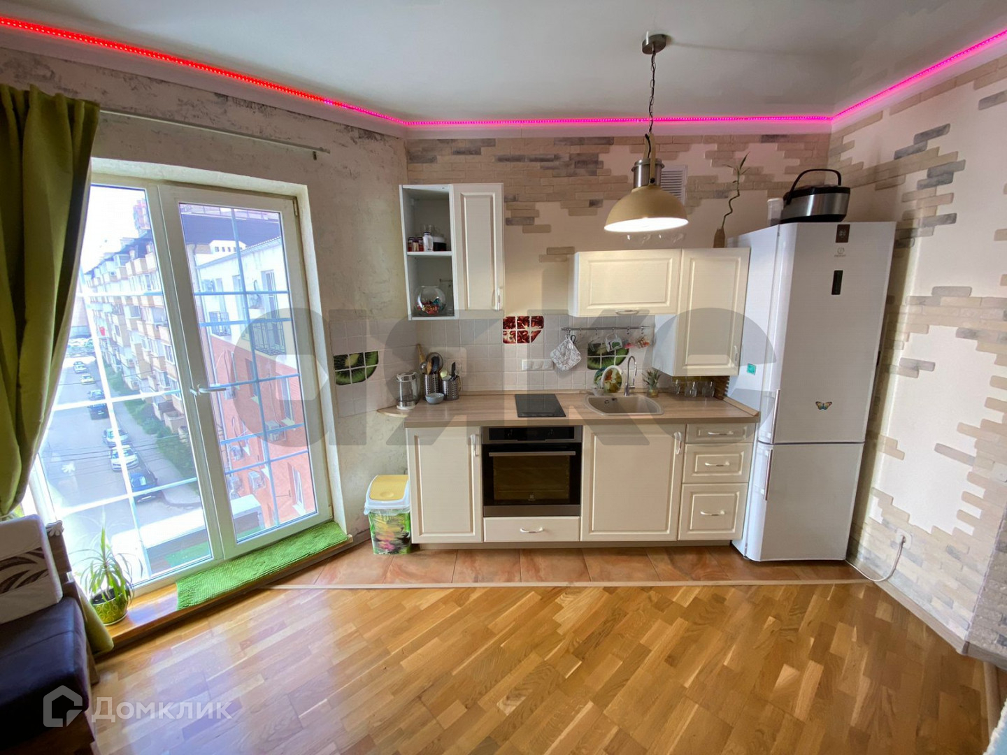 Четыре изолированные комнаты, просторная кухня-гостиная с витражным остеклением. Хороший ремонт. Центральные коммуникации.