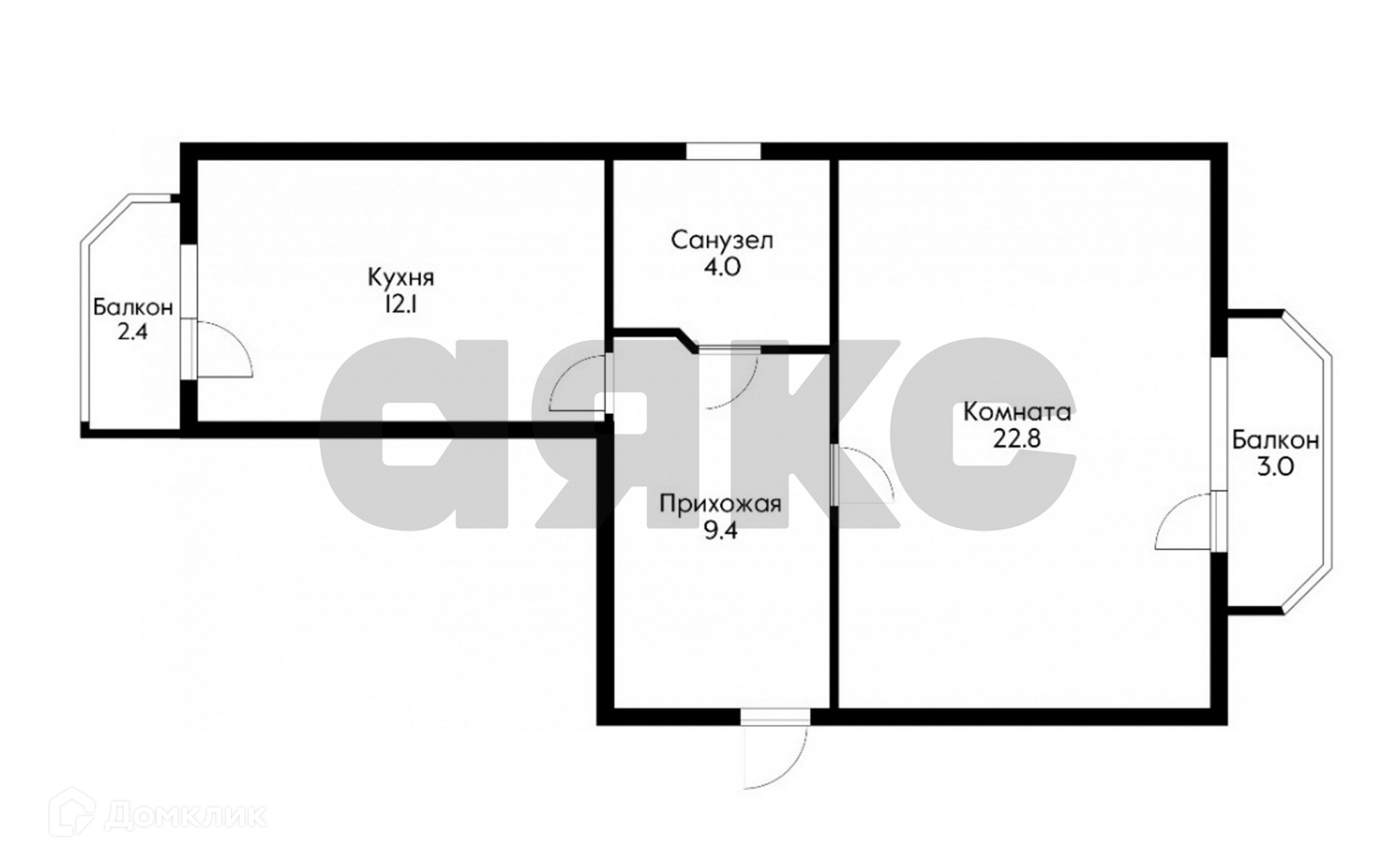 Жилая площадь 22.8 м2