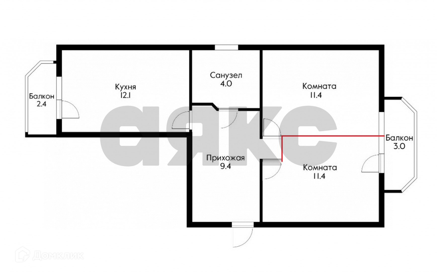 Балкон, лоджия 1 балкон