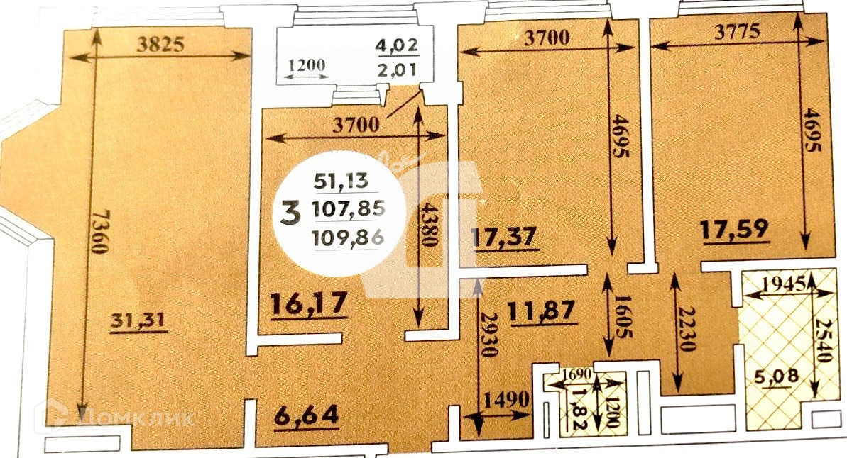 -жилые комнаты (17,37 кв.м, 17,59 кв.м, 16,2 кв.м)
