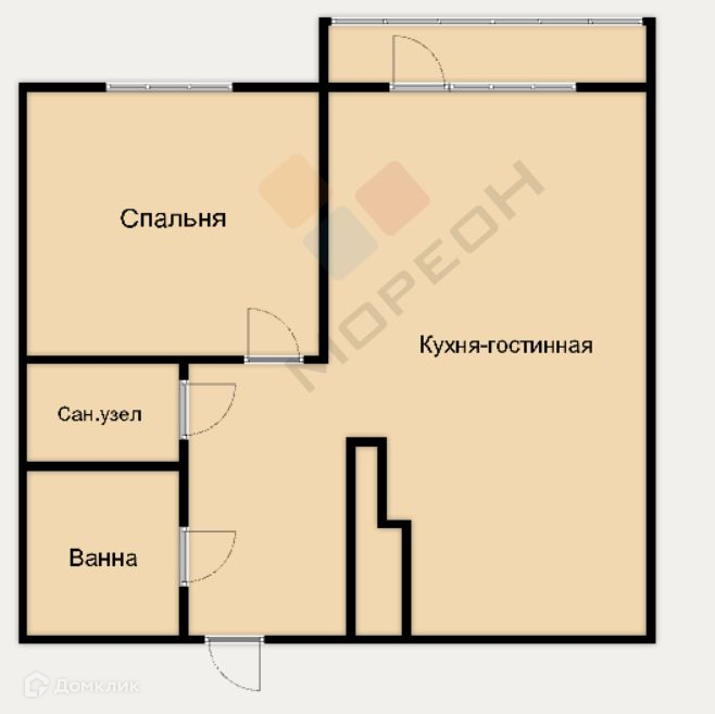 Балкон, лоджия 1 балкон