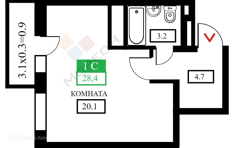 Общая площадь 31.5 м2