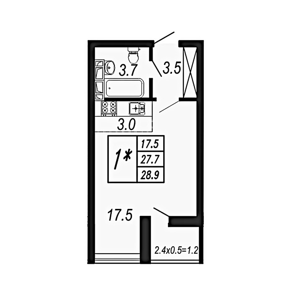 Есть планировка, смотрите фото. Квартира широкая, с двумя окнами.