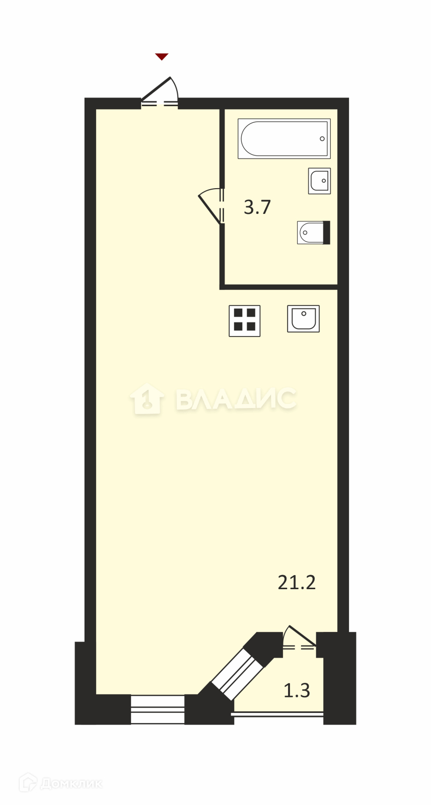 Общая площадь 22.8 м2