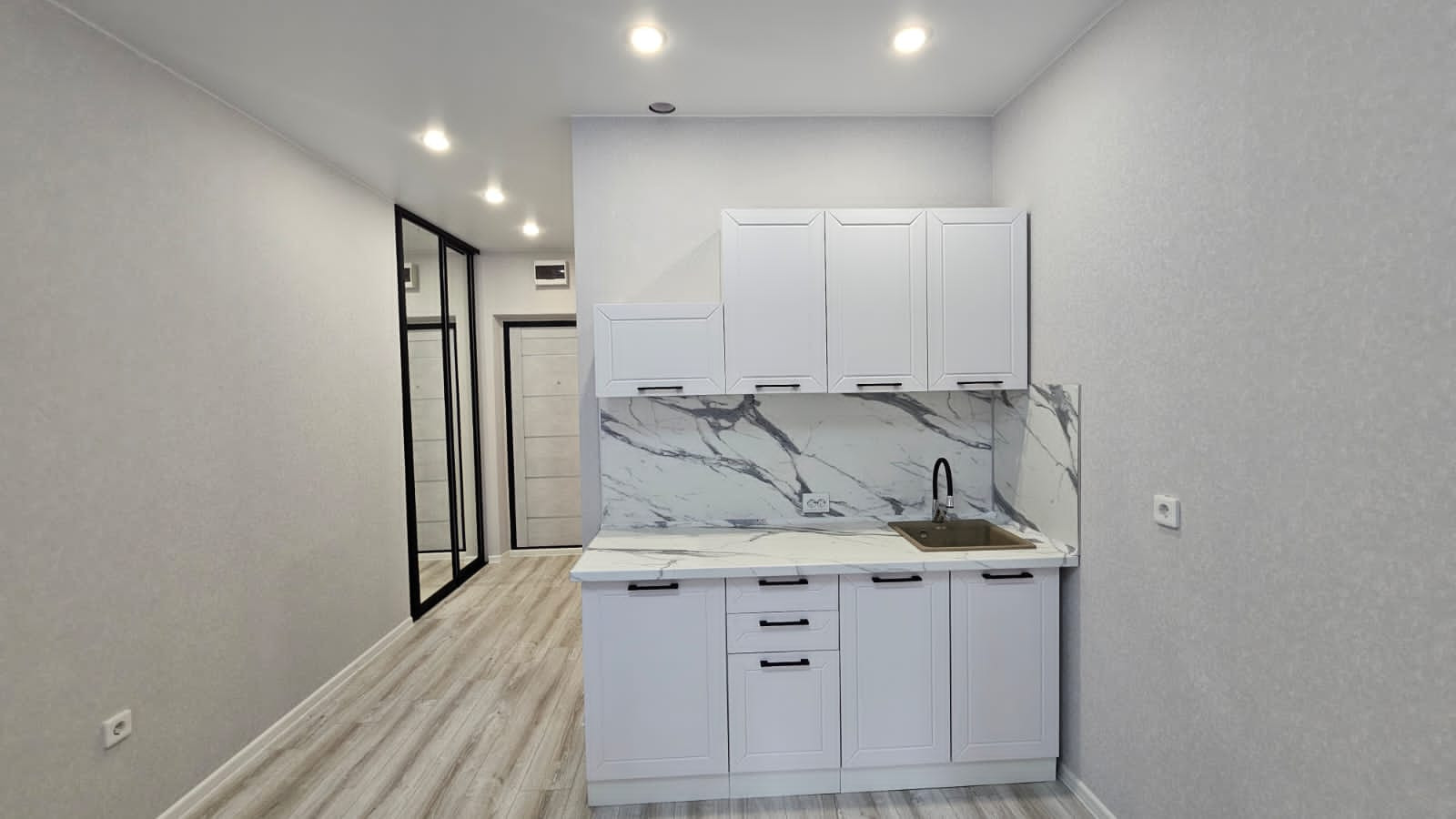 В квартире выполнен свежий ремонт, что делает ее полностью готовой к вашему проживанию. Студия оформлена  в современном стиле с использованием нейтральных цветов и качественных отделочных материалов.