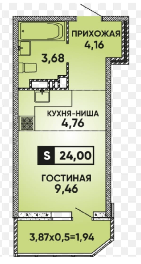 Общая площадь 24 м2