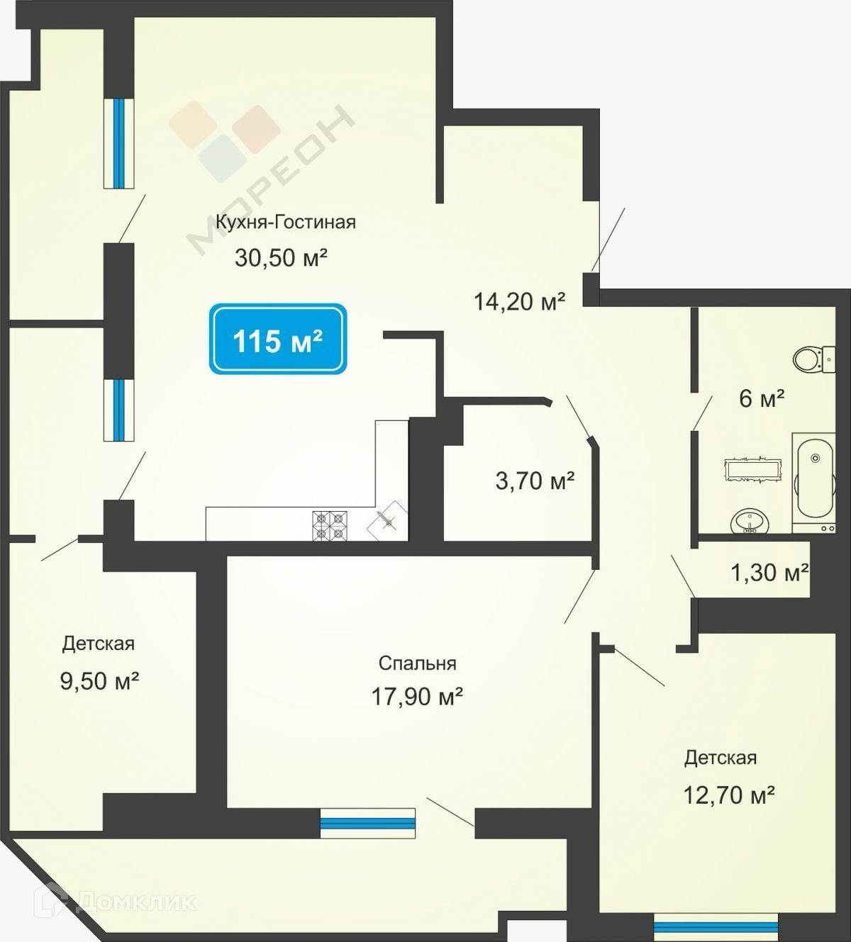 Общая площадь 115 м2