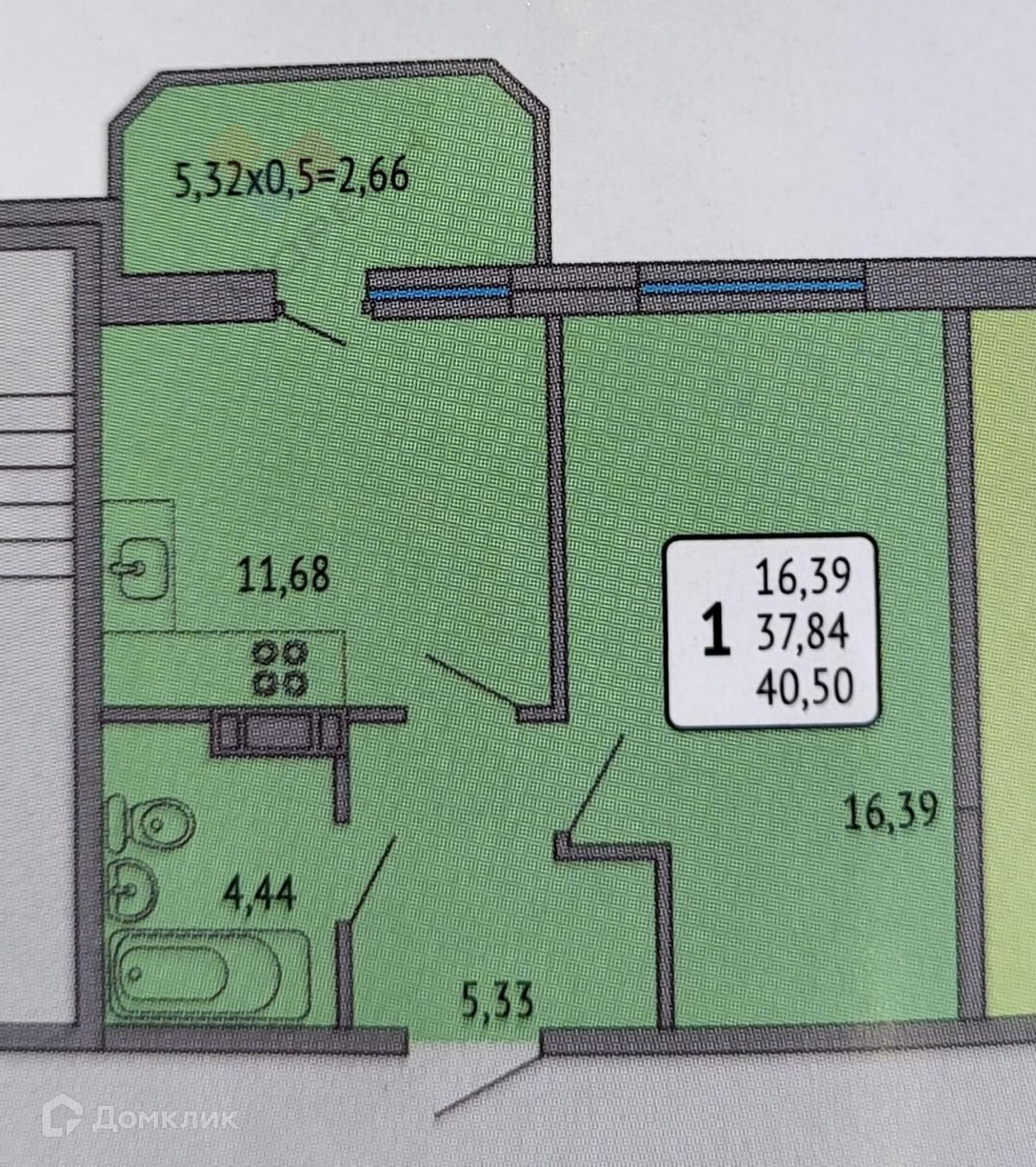 Общая площадь 37.6 м2