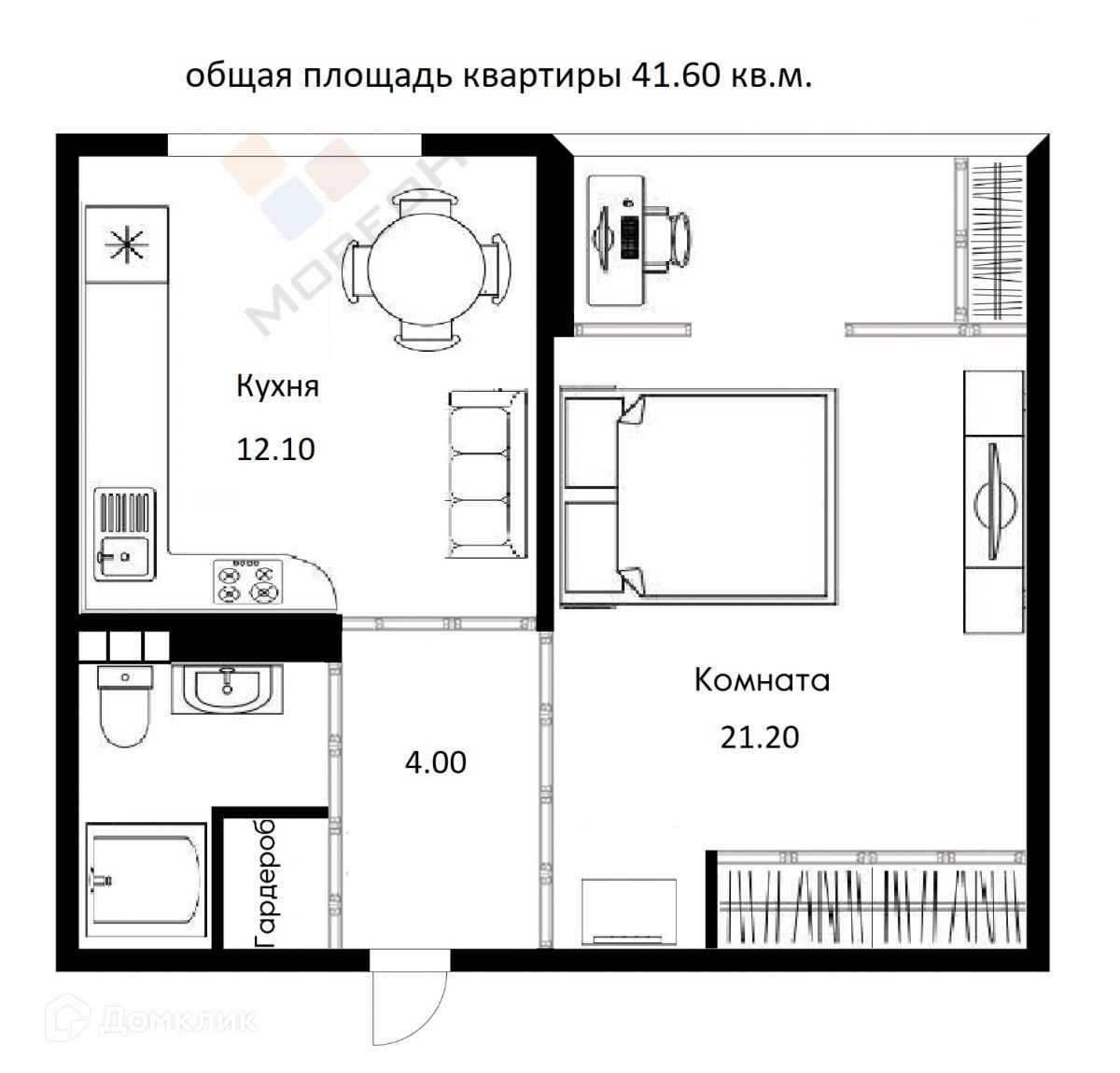 Общая площадь 41.6 м2