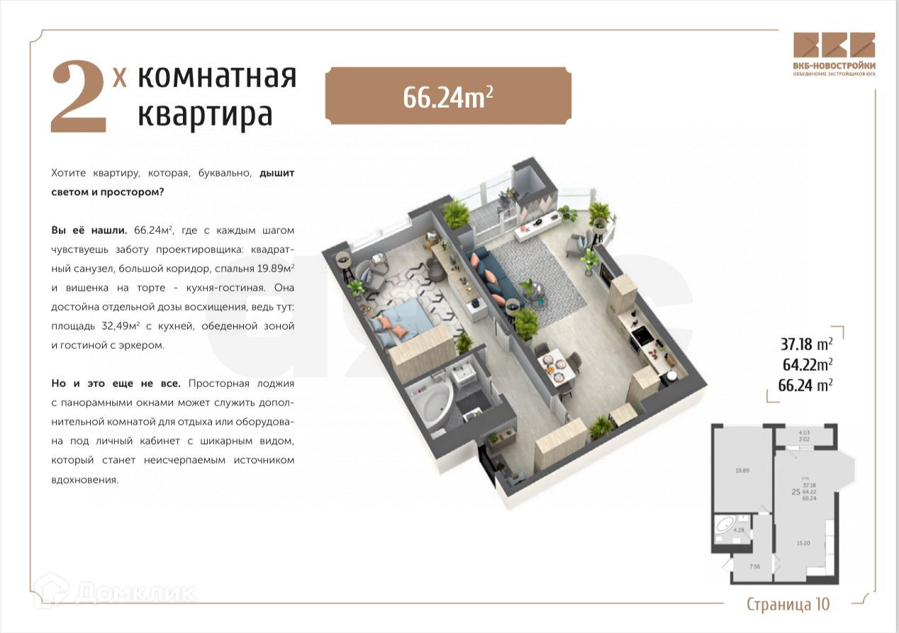Общ. S=70 кв.м, просторная спальня 19,7 кв.м. и куxня-гоcтинaя 32,33 кв.м., с/у, пpoсторный балкон с панорамным остеклением, который можно присоединить к кухне-гостиной.