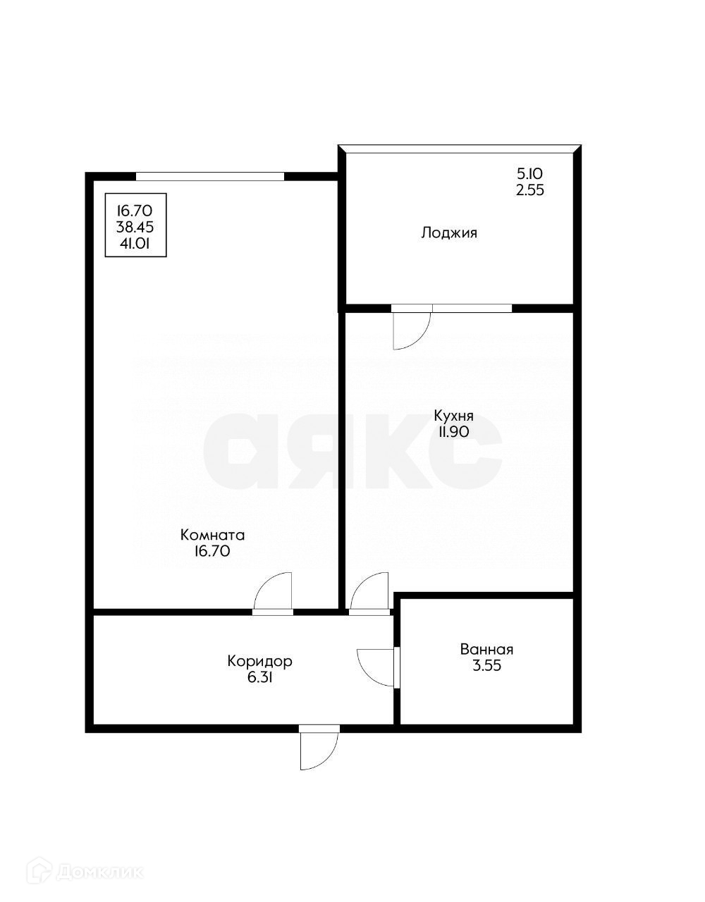 Общая площадь 38.46 м2