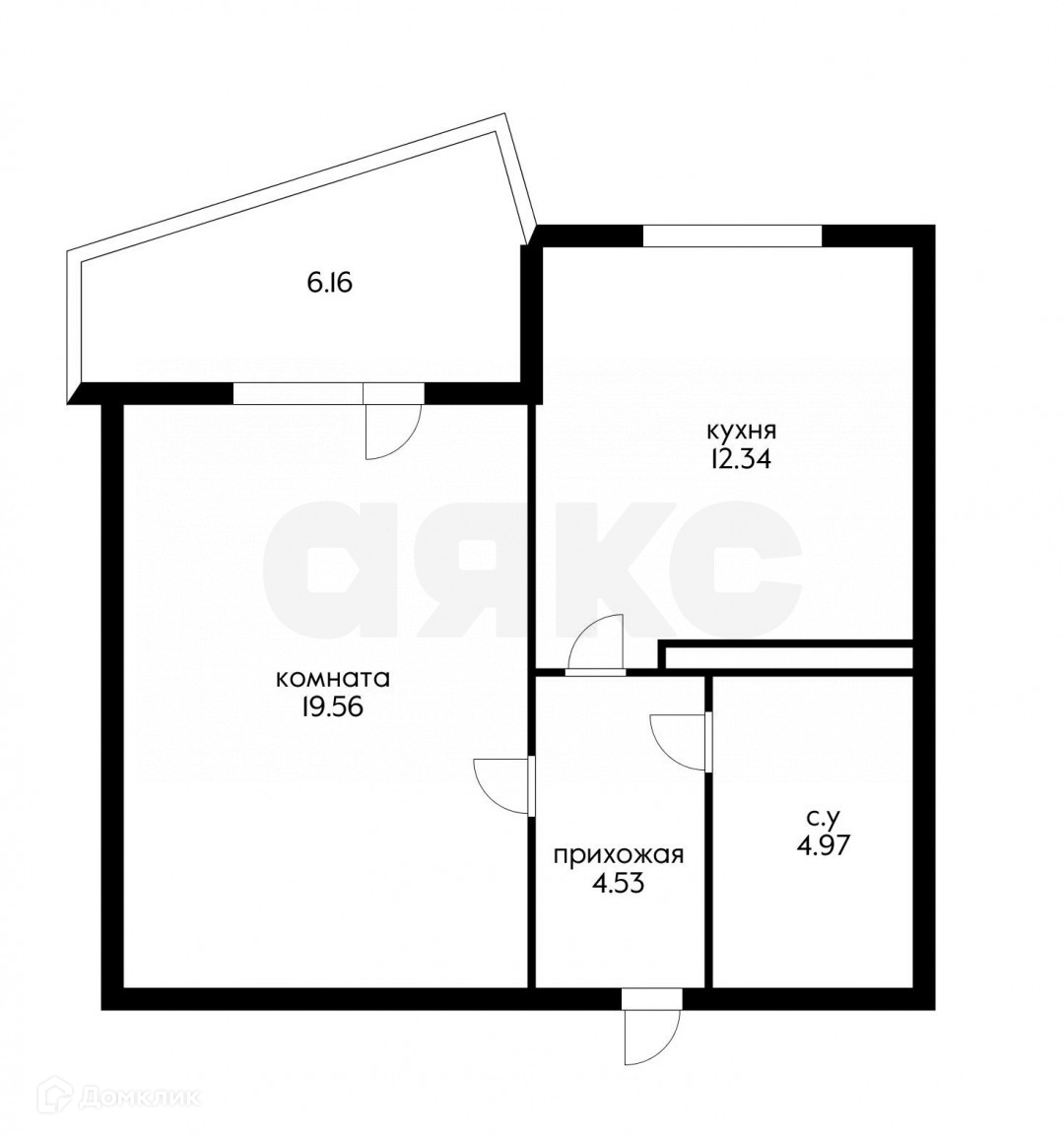 Жилая площадь 19.56 м2
