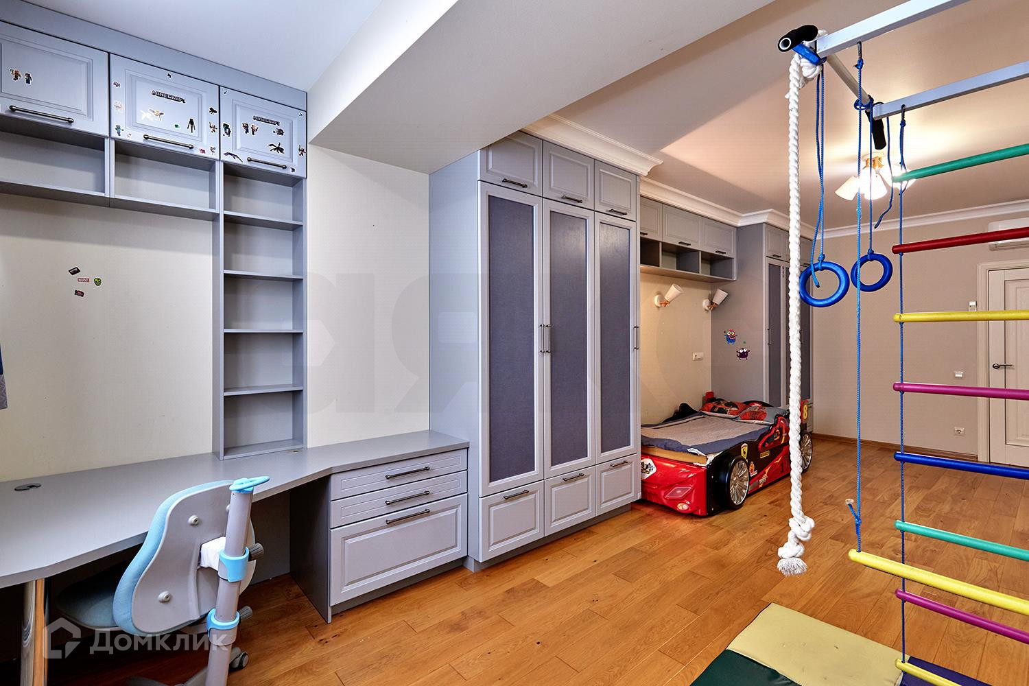 Закрытая территория дома, свободная от машин, большая детская площадка, видеонаблюдение по периметру.