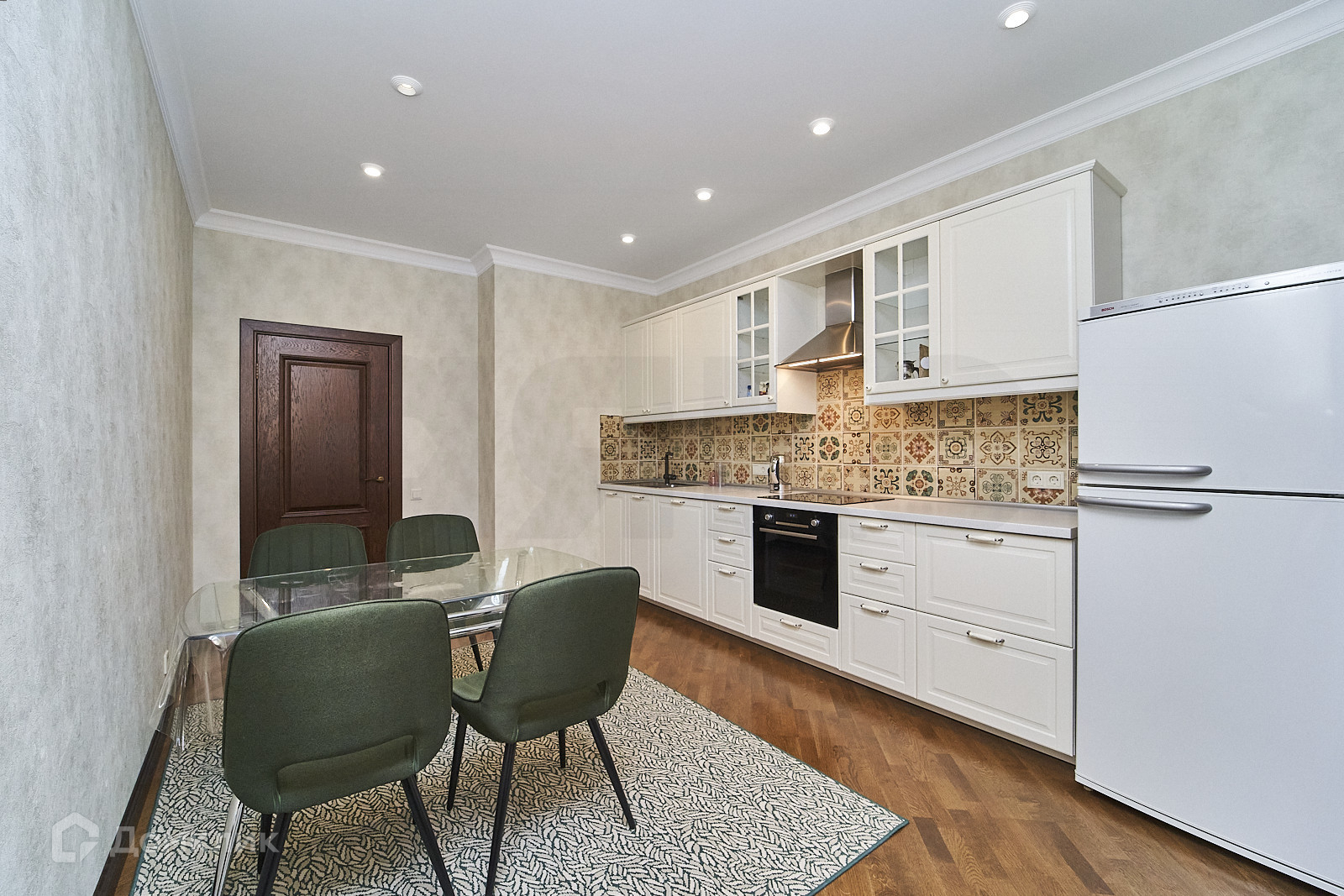 В квартире сделан качественный ремонт. На полу паркетная доска. Обои немецкой марки Marburg. Потолок сделан из гипсокартона. Кухня и санузел выложены испанской плиткой. Сантехника хорошего качества. В санузле, имеется система защиты от протечки Neptun. А также, в квартире установлена система охраны. В ремонте ,использовались качественные отдельные материалы. Закрытая территория, подземная парковка, на территории установлено видеонаблюдение, есть детская и спортивная площадка.