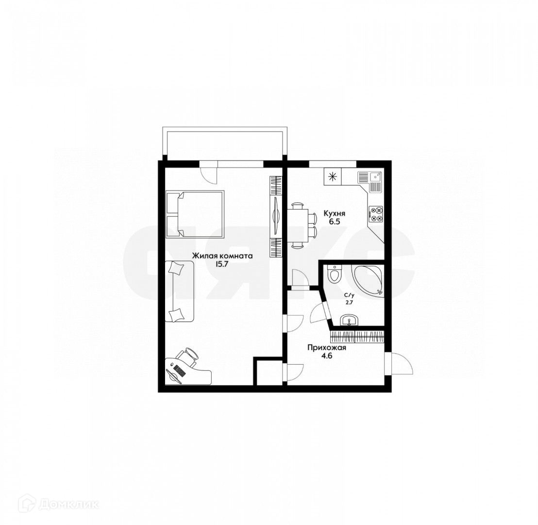 Балкон, лоджия 1 балкон
