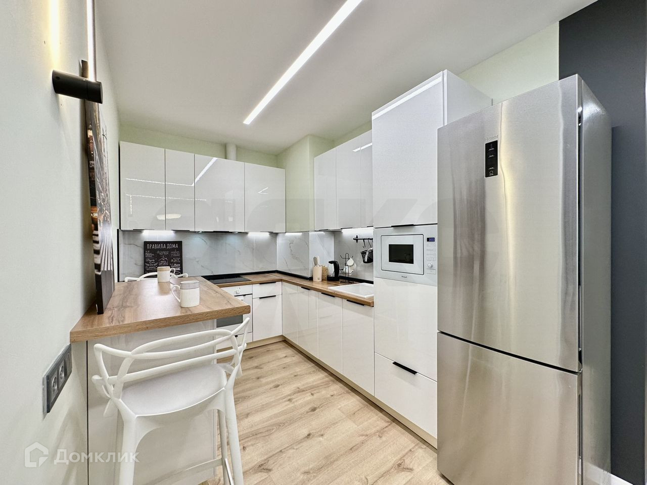 Квартир с дизайнерским ремонтом минимализм, который делали для себя из дорогих материалов и очень качественно. Удобно перепланировали квартиру, стало на много лучше чем было. Использован Итальянский керамогранит, новые радиаторы, полностью заменены все МПО, двери невидимки, диодное освещение, немецкий ламинат.